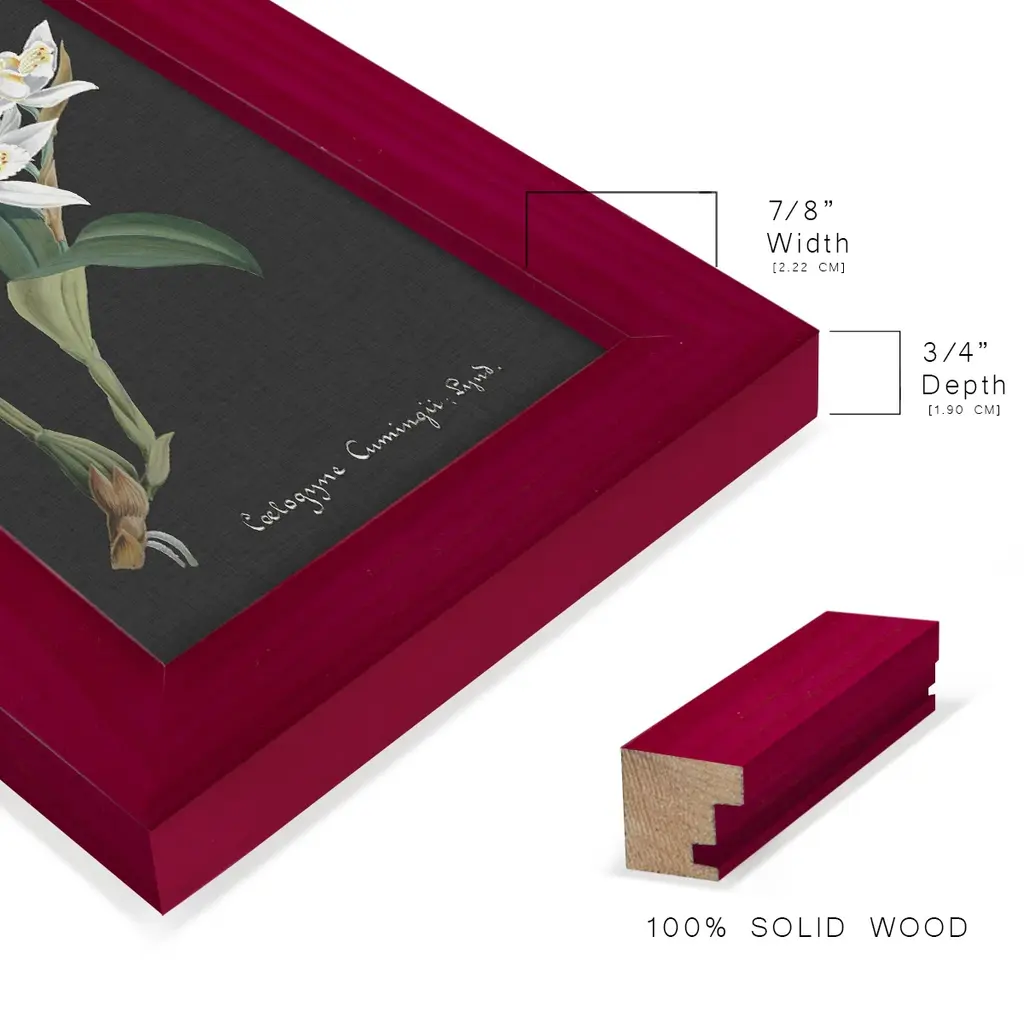 Orchid on Slate III -EZ SWITCH Framed Print w/glass-Cherry Red A delightful, framed print. Featuring a solid wood frame with real wood glass. This premium print is giclee quality. In addition, every frame features a removable back and table top stand. This allows you to change your art in the future or to just stand the art on a table for a new look. We are sure you'll enjoy our new series of EZ SWITCH Framed Art. Solid Wood Frame Real Glass Removable / Replaceable Art Built in Tabletop Stand Sizes range from 4x6 up to 12x15 - buy just one or pair them up as sets as you see fit.
