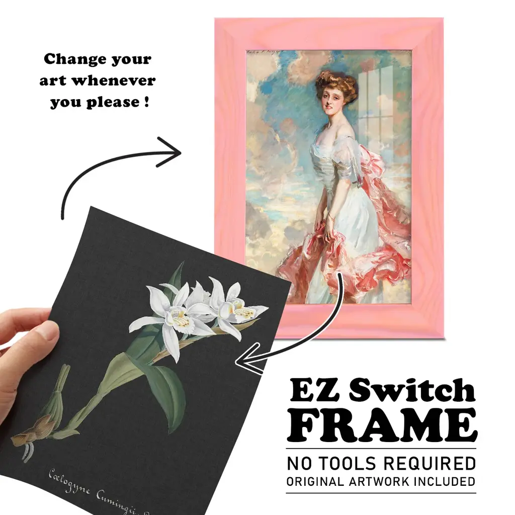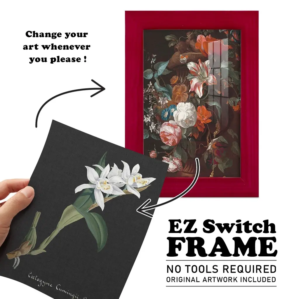 Orchid on Slate III -EZ SWITCH Framed Print w/glass-Cherry Red A delightful, framed print. Featuring a solid wood frame with real wood glass. This premium print is giclee quality. In addition, every frame features a removable back and table top stand. This allows you to change your art in the future or to just stand the art on a table for a new look. We are sure you'll enjoy our new series of EZ SWITCH Framed Art. Solid Wood Frame Real Glass Removable / Replaceable Art Built in Tabletop Stand Sizes range from 4x6 up to 12x15 - buy just one or pair them up as sets as you see fit.