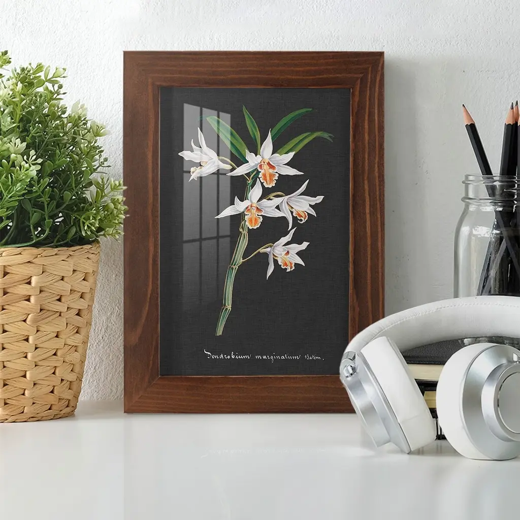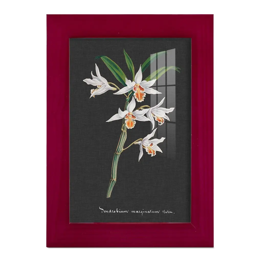 Orchid On Slate Iv -Framed Print W/glass-Cherry Red - 12x15 - Walnut