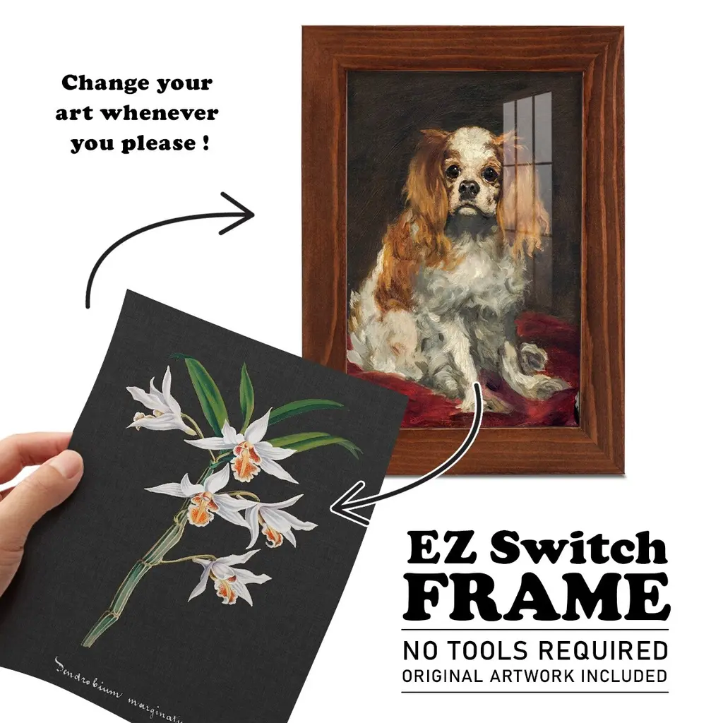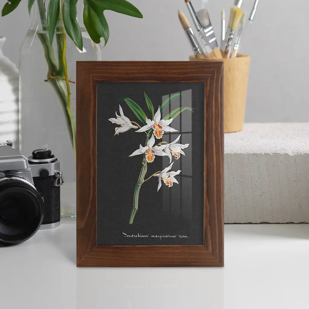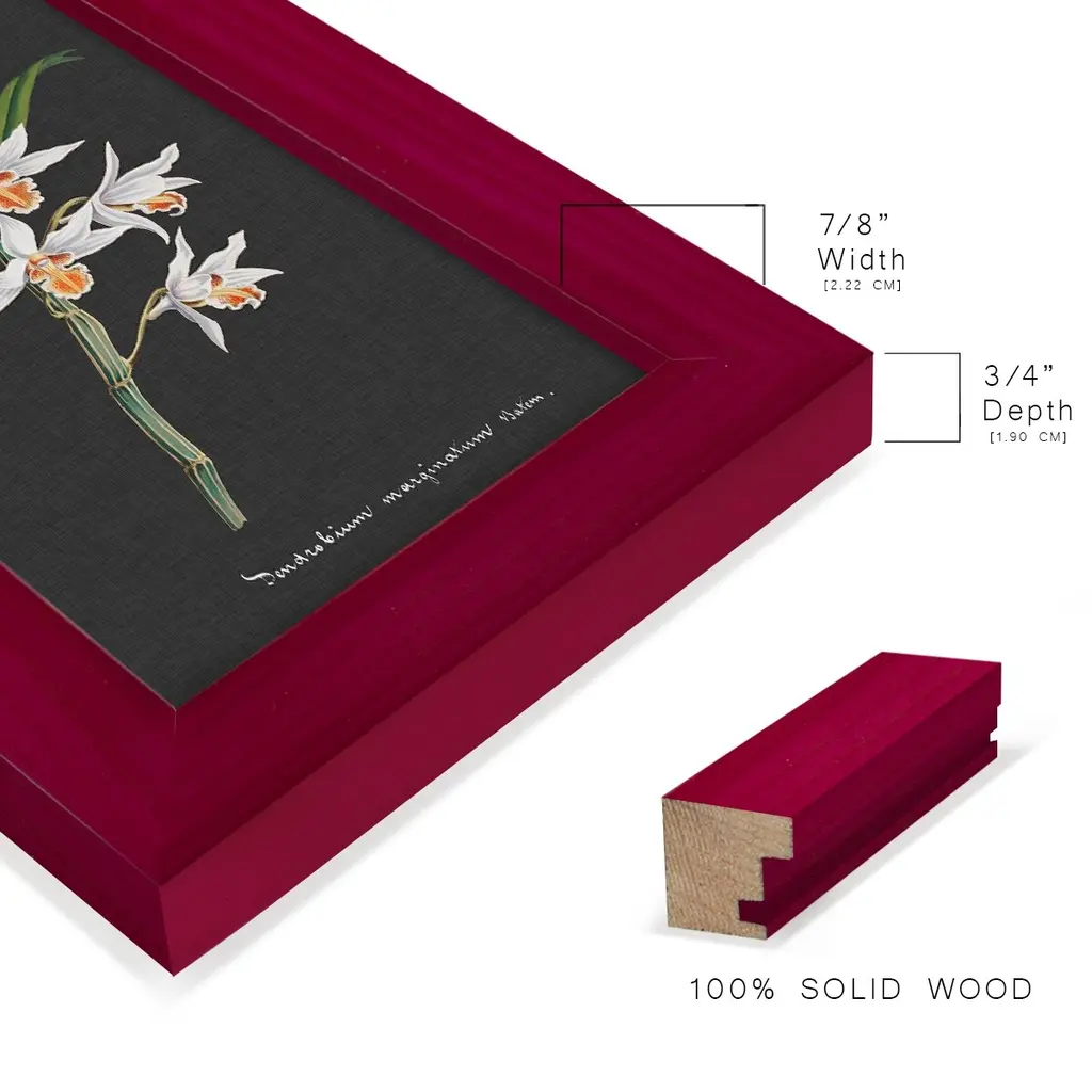 Orchid on Slate IV -EZ SWITCH Framed Print w/glass-Cherry Red A delightful, framed print. Featuring a solid wood frame with real wood glass. This premium print is giclee quality. In addition, every frame features a removable back and table top stand. This allows you to change your art in the future or to just stand the art on a table for a new look. We are sure you'll enjoy our new series of EZ SWITCH Framed Art. Solid Wood Frame Real Glass Removable / Replaceable Art Built in Tabletop Stand Sizes range from 4x6 up to 12x15 - buy just one or pair them up as sets as you see fit.