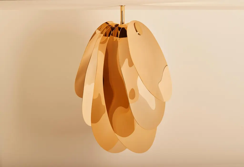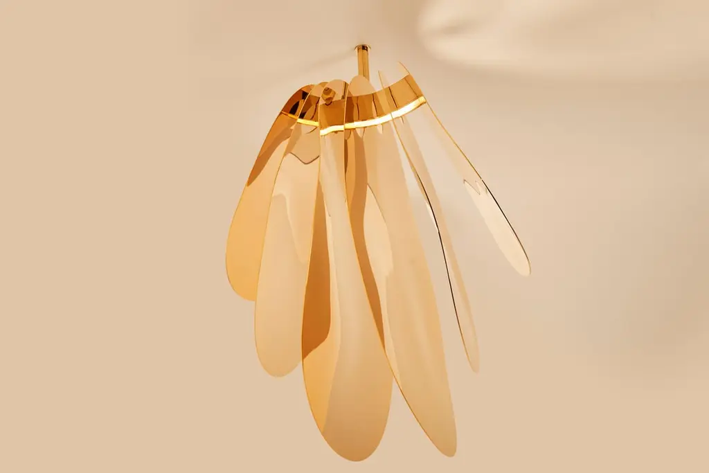 Orchidée simple pendant light by Mydriaz.Dimensions: W 40.5 x H 61.2 x D 47.5 cmMaterials: BrassFinishes: Golden-plated polished brass, White nickel finish on polished brass, Black nickel finish on polished brass18 kgLight source: 12V to 54V LED spotlight - 3W/spotlight - Class 3 -DimmableCertification: CE Certification, Other certifications possible via a subcontractor All our lamps can be wired according to each country. If sold to the USA it will be wired for the USA for instance.Our products are handmade in our workshop. Dimensions and finishes may vary slightly from one model to another dimension can be customized certain changes in finishes and/or dimensions may result in additional costs.Founded in 2011, MYDRIAZ is a creative studio specializing in the tailor-made production of decorative lighting, monumental installations, and brass furniture.At the head of MYDRIAZ, Jennifer Midoz and Malo du Bouëtiez offer refined sets combining brass with other noble materials. From the first sketch to the installation, the creators participate in all stages of the production.Elegance, balance, and harmony are at the heart of their aesthetic concerns.Working at the convergence of art and craft disciplines, their work around lighting and furniture combines traditional manufacturing methods with contemporary techniques. Between requirement and avant-garde research, MYDRIAZ places sensitivity, finesse, and lightness at the heart of its philosophy.