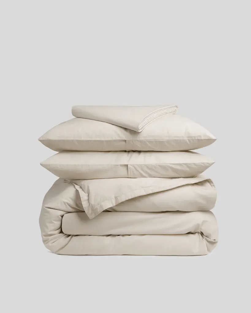 Original patterns are printed onto a soft and breathable percale, using low impact dyes that pair well with our classic Coyuchi colors. The vine pattern is inspired by a Sarasa print, which is hand painted by a designer to mimic cotton blossoms, then rotary printed. Saturated accents add subtle pops of color to the neutral palettes. The dot pattern draws from antique woodblock printing, creating a shrunken print in a simple dotted design. 100% plant-based softener 100% Fair Trade certified organic cotton is grown + woven in India GOTS Certified