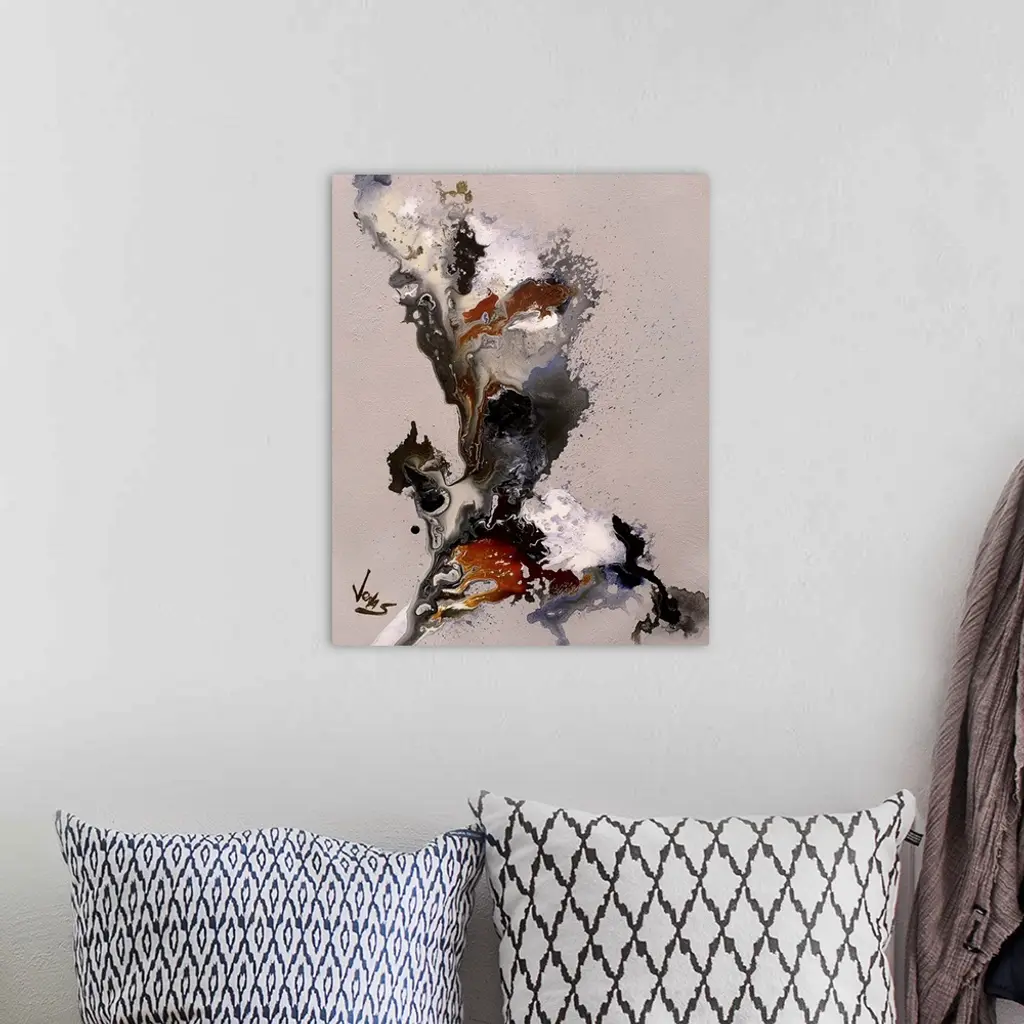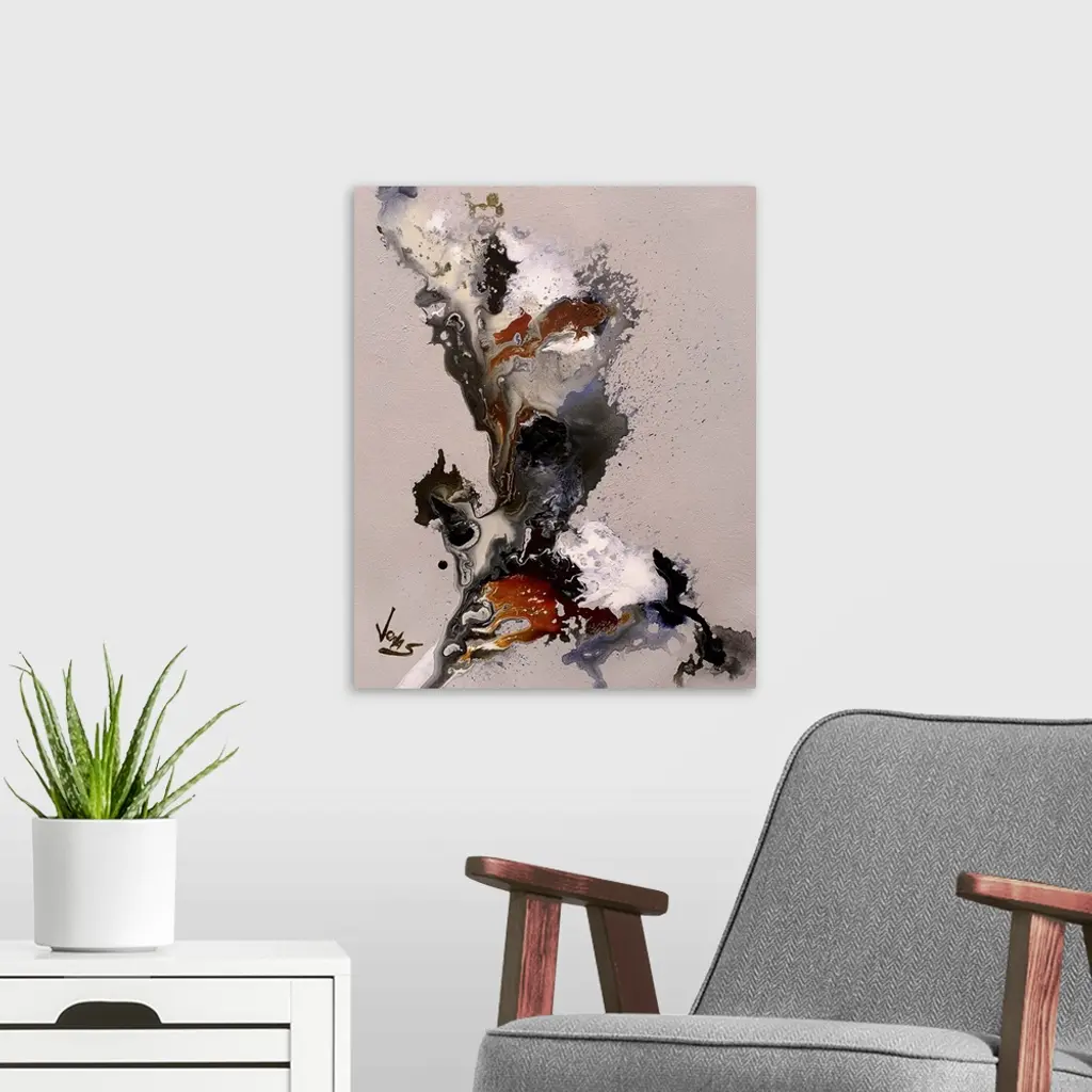 Contemporary abstract painting using earthy tones converging toward the center of the image in a range textures.