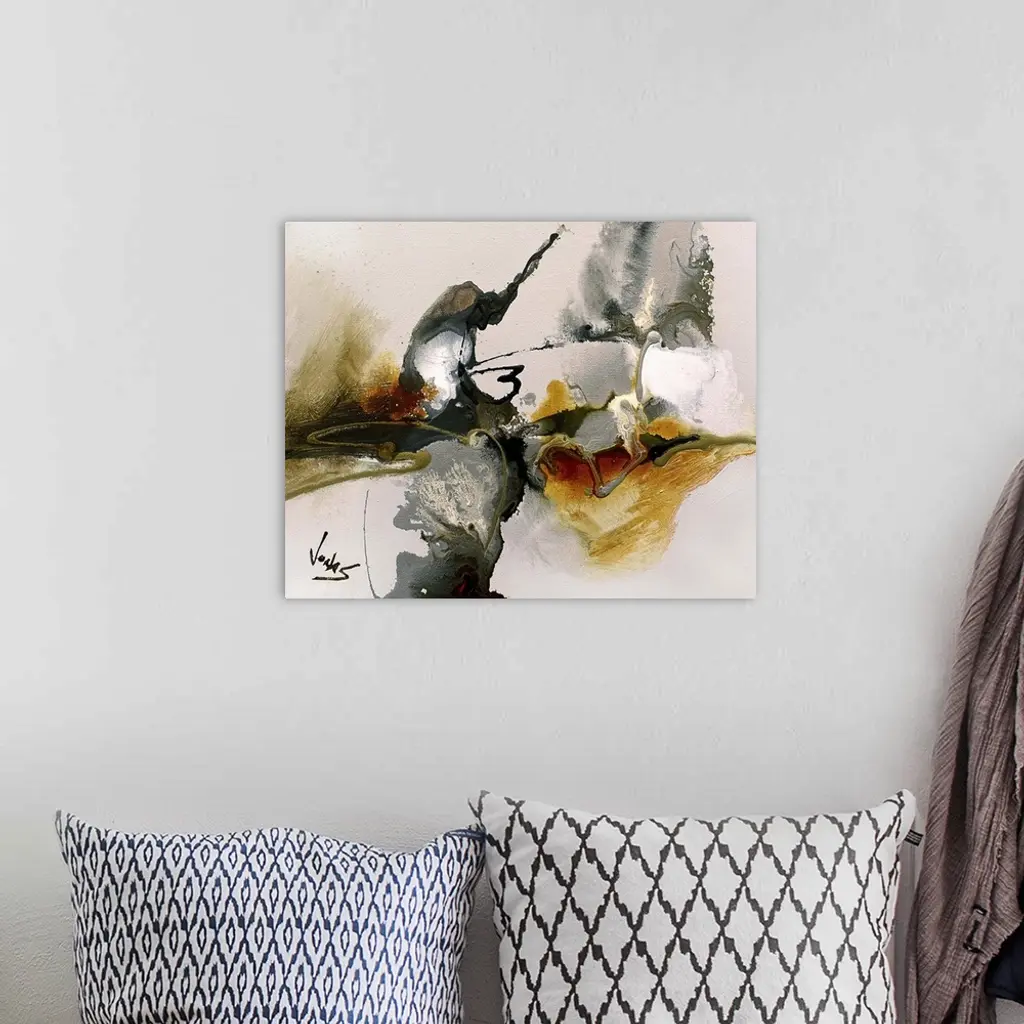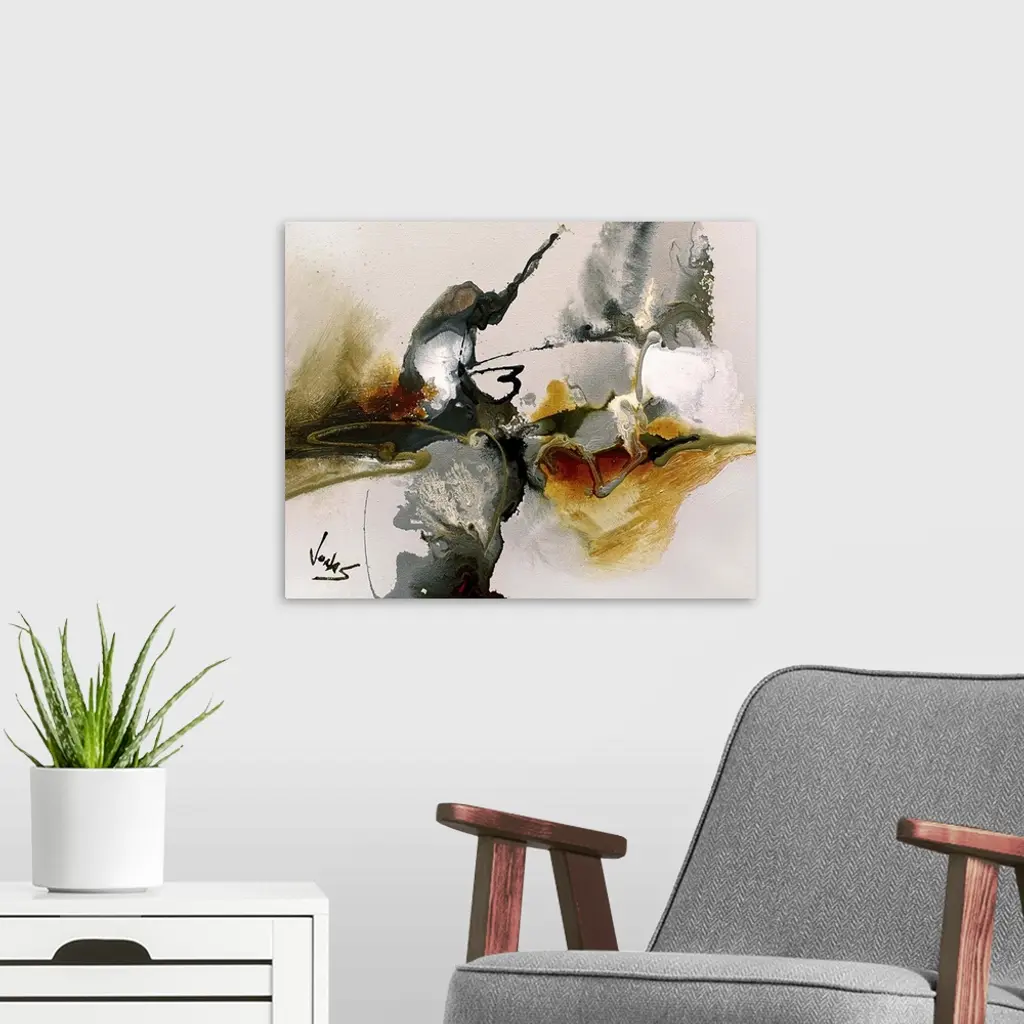 Contemporary abstract painting using earthy tones converging toward the center of the image in a range textures.