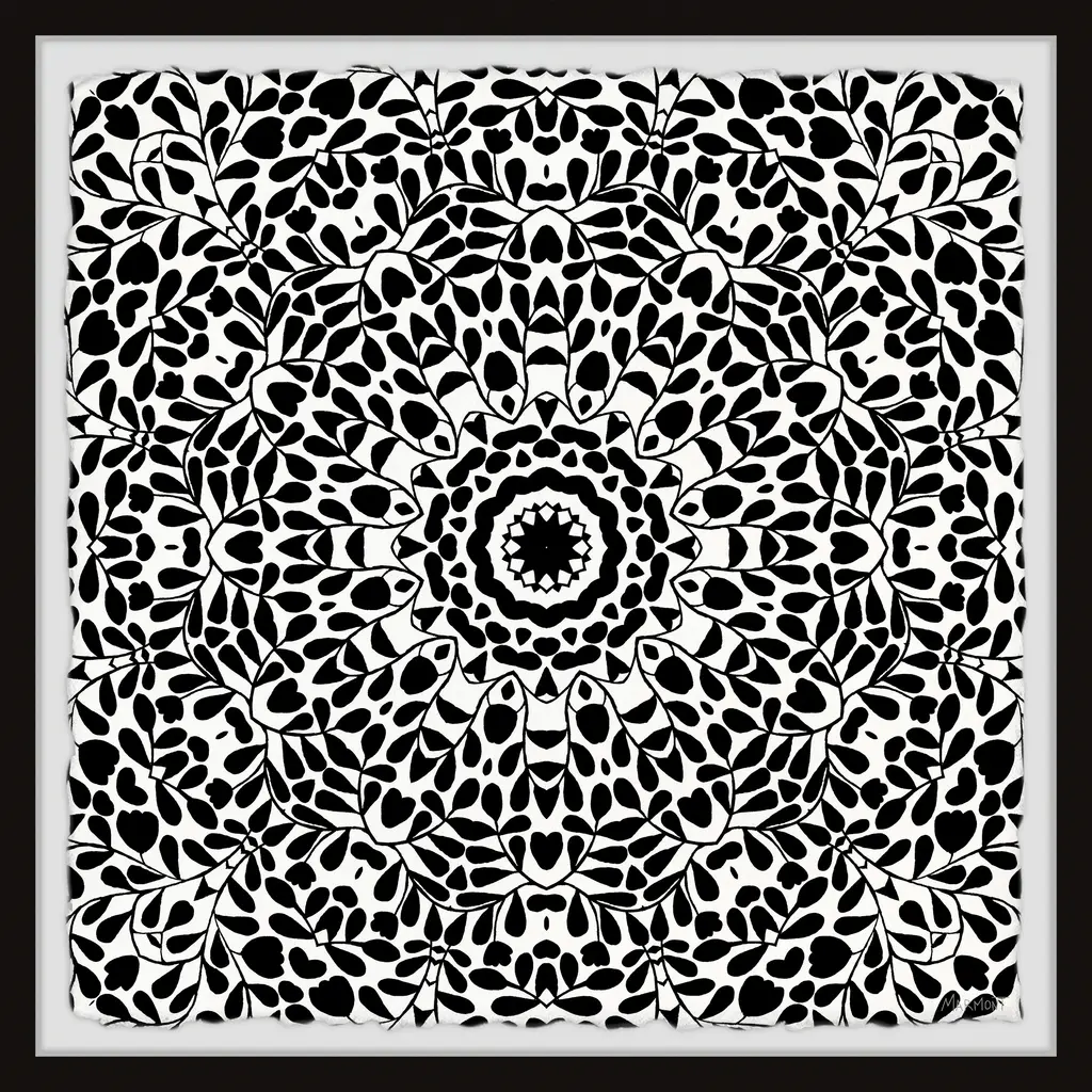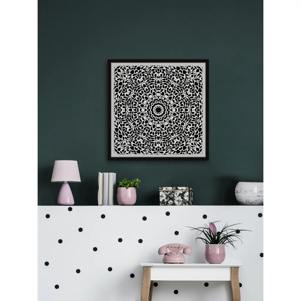 This bold, black and white drawing print features a detailed pattern that is eye-catching and symmetrical all at once. Proudly printed in the USA, this piece is printed on high quality archive paper and professionally hand-framed. With wall-mounting hooks included, this artful accent is ready to hang up as soon as it reaches your front door. • Top quality Giclée print on high resolution Archive Paper • Hand cut deckled edges • High quality durable non-warping frame • Finished under shatter resistant plexiglass • Arrives ready to hang • Includes a certificate of authenticity • Printed in the USA