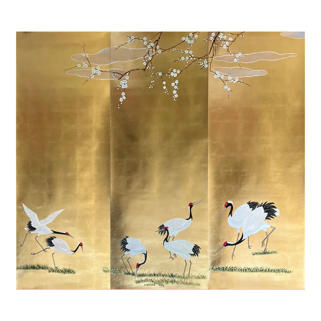 Oriental Wall Art Hand Painted Cranes And Pine Tree