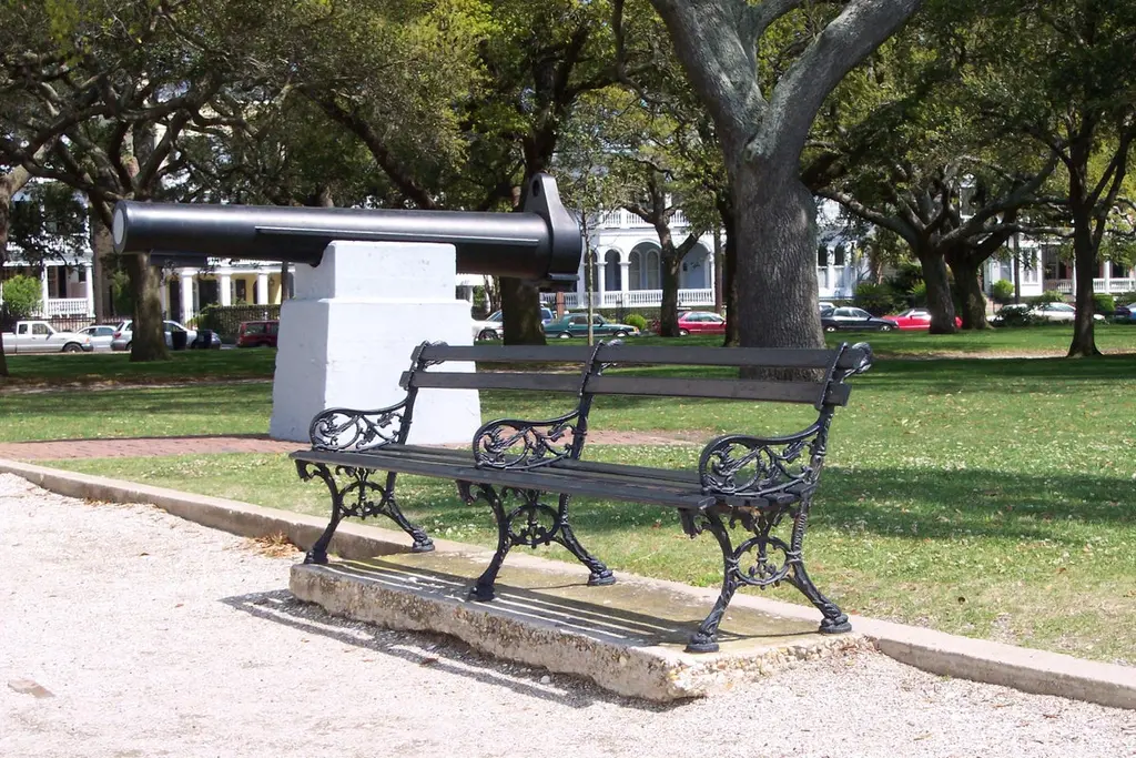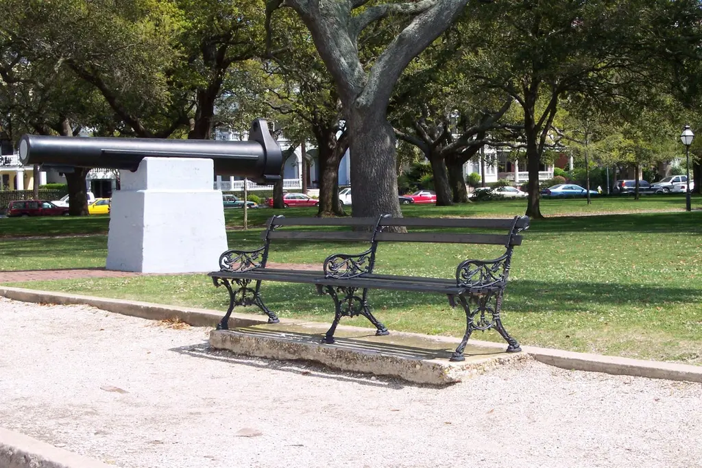 Original Charleston Battery Bench Cast Iron & Painted Cypress, 6 Ft. Double Size