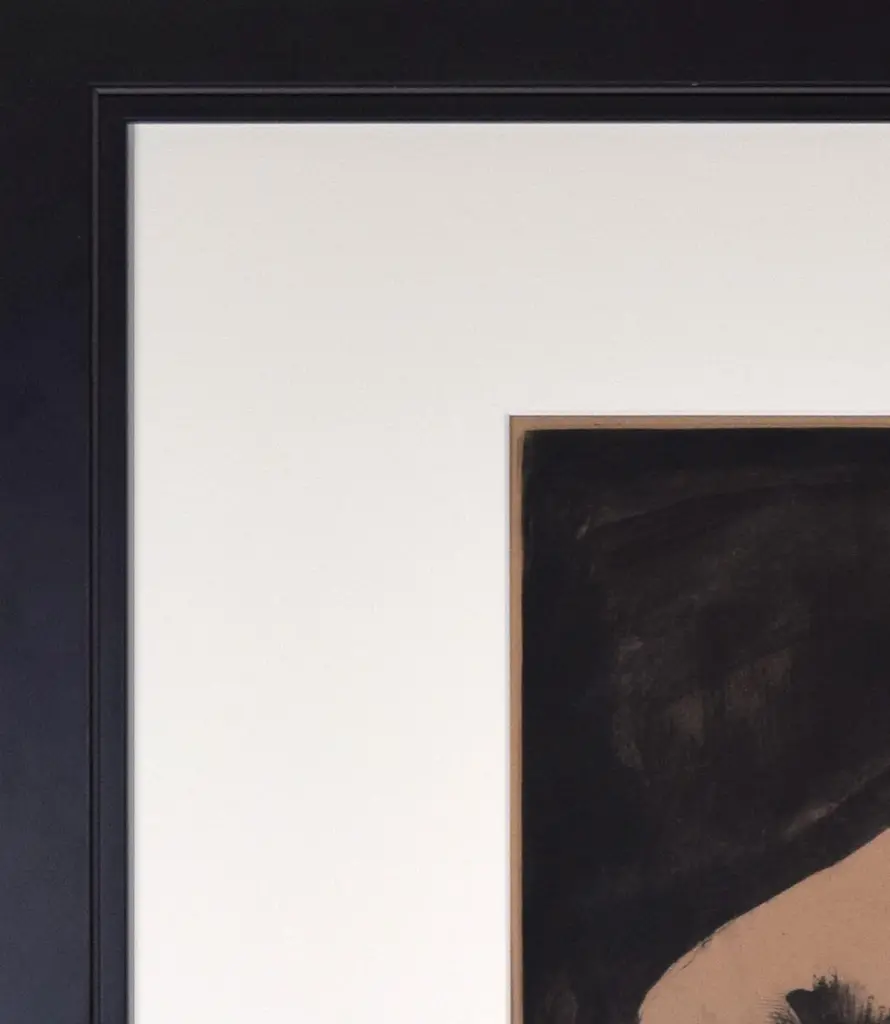 Original aquatint etching by Important French artist Georges Rouault (1871-1958) from the "Miserere" series of "Miserere et Guerre" (Mercy and War), plate 18: "Le condamné s'en allé" (The condemned man was led away). Original aquatint, drypoint, burnisher, roulette, 1922. 450 impressions of Miserere, Rouault's masterpiece and one of the most important series of the twentieth century. Initialed and dated 1922 bottom left in plate (there are no pencil-signed proofs). Black frame w/ cream mat.