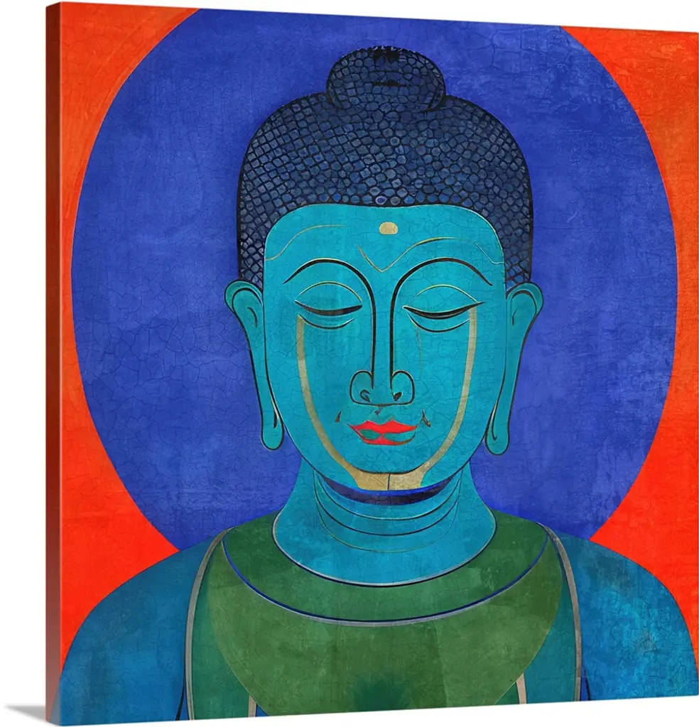 Buddha is at one with nature as he watches blossoming lotus buds restore peace and harmony to the world. Sunil Jaiswal depicts the Enlightened One in deep, rich colors. Spiritual themes are a constant source of inspiration for the Indian artist.