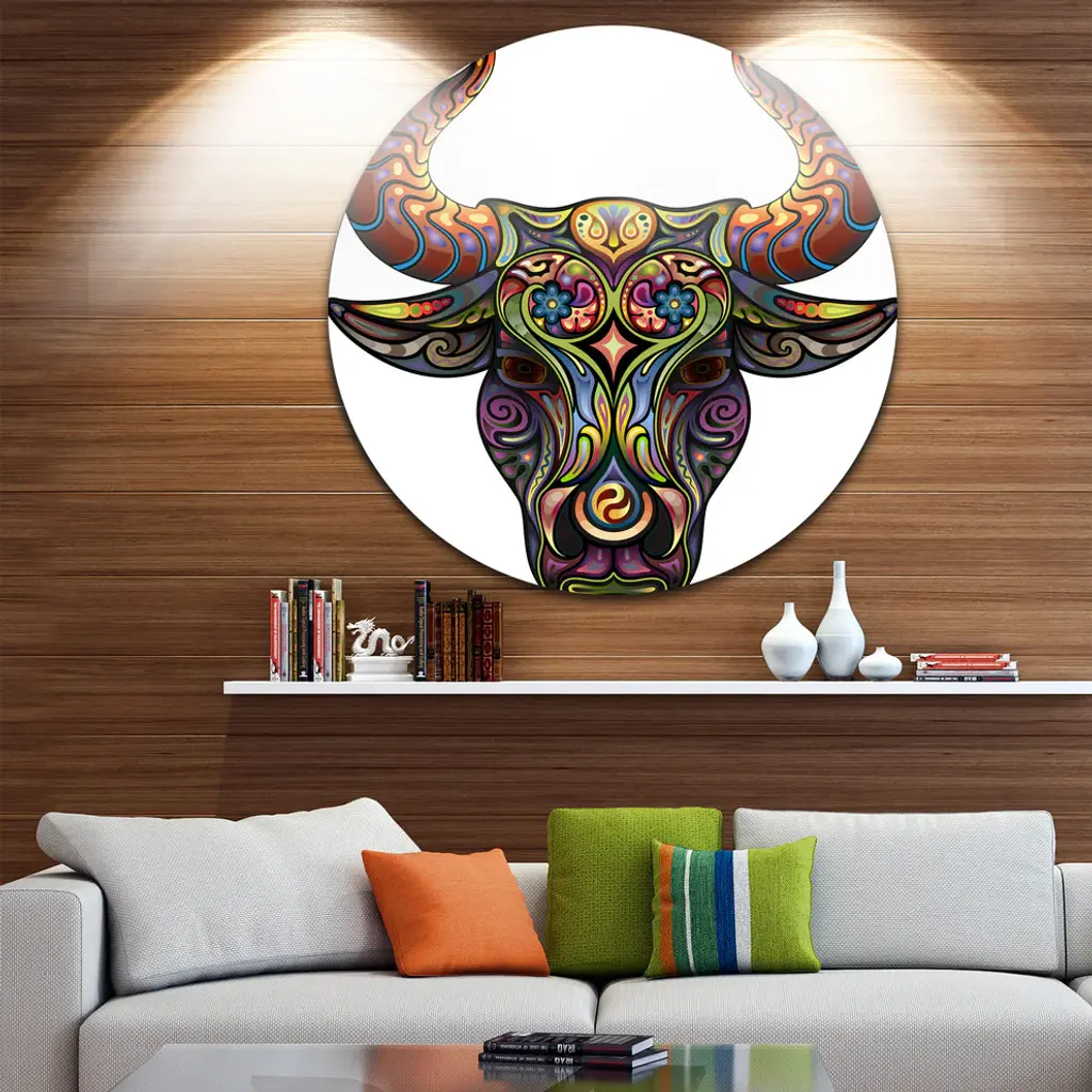Ornamental Bull, Animal Digital Round Wall Art, 11"