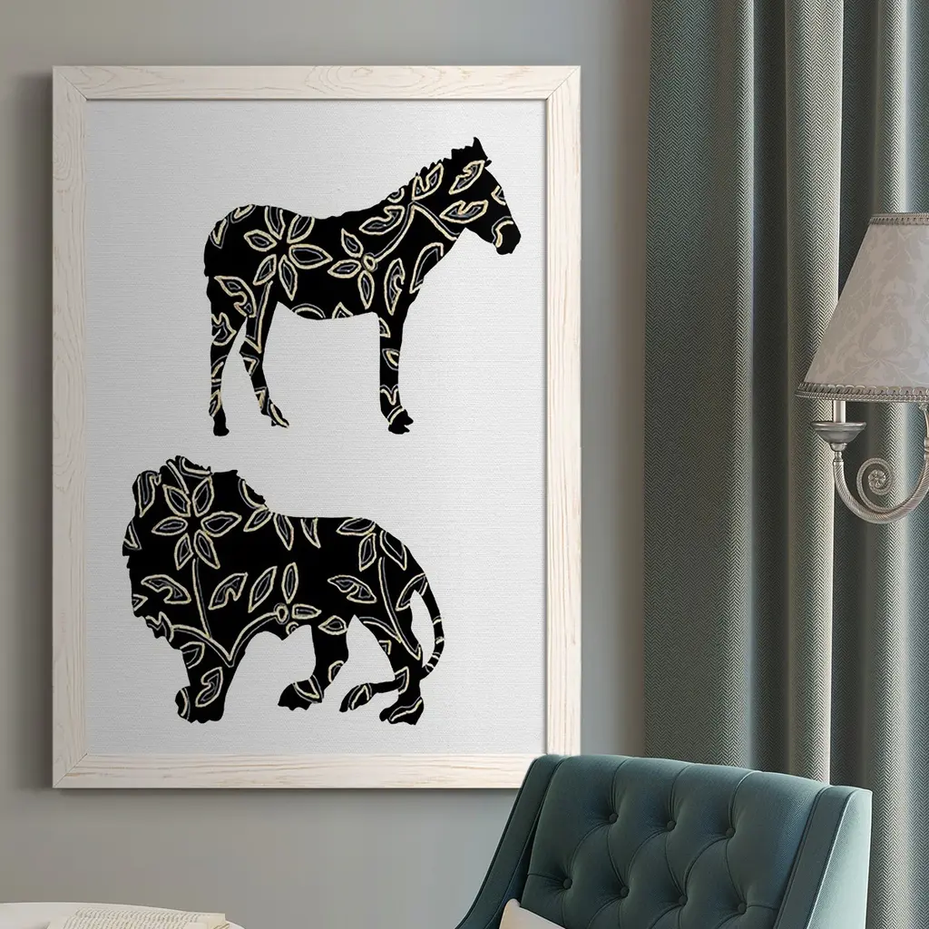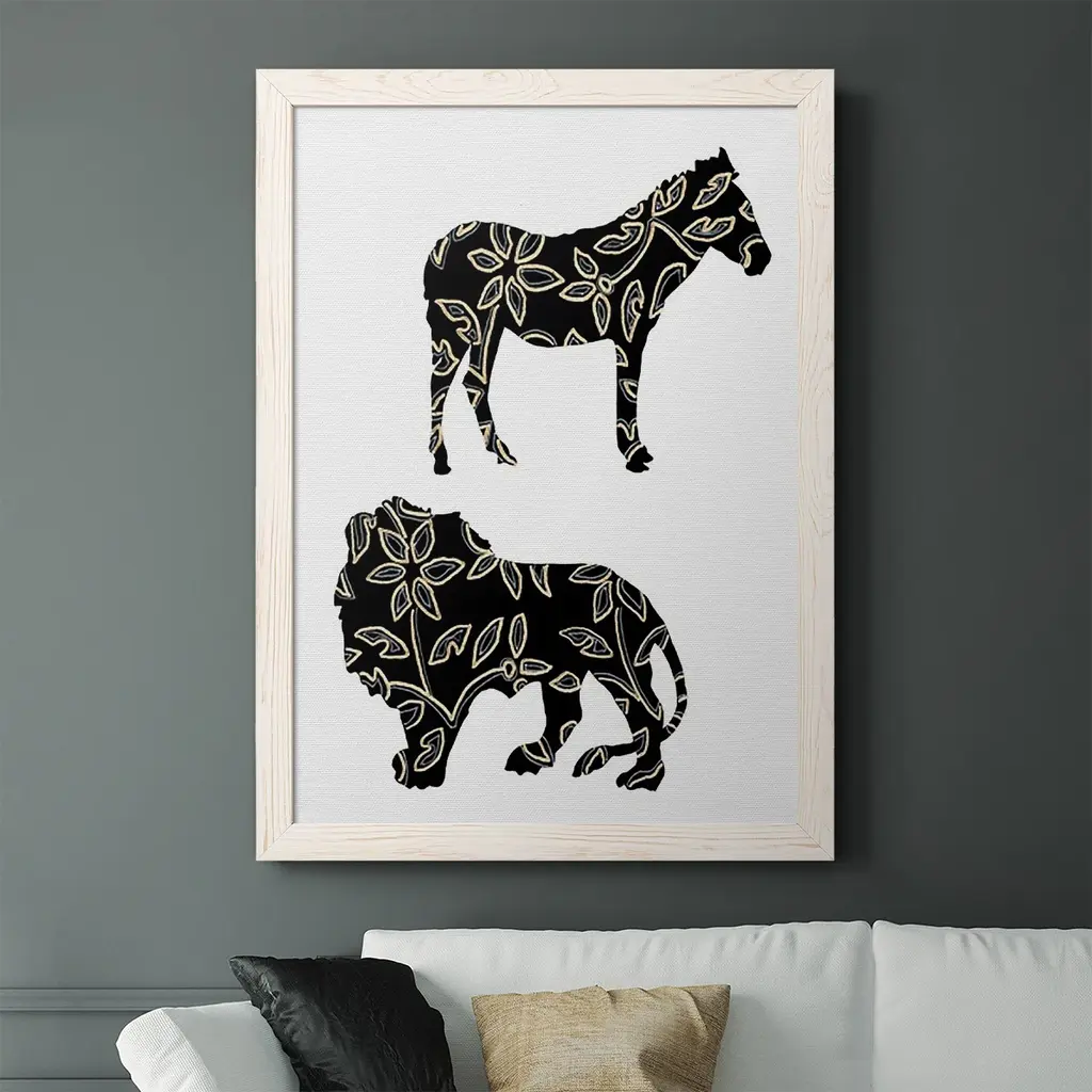 Ornamental Safari Animals I-Premium Framed Canvas - Ready To Hang - 31.5x43.5 - Grey