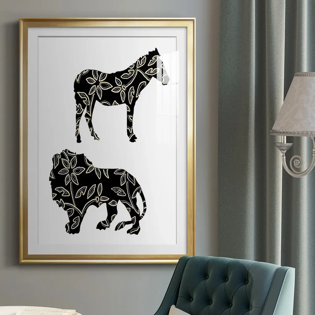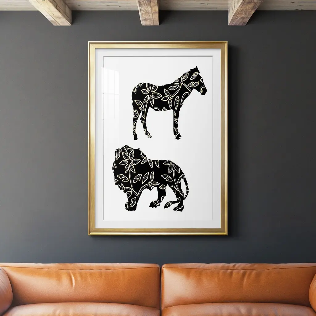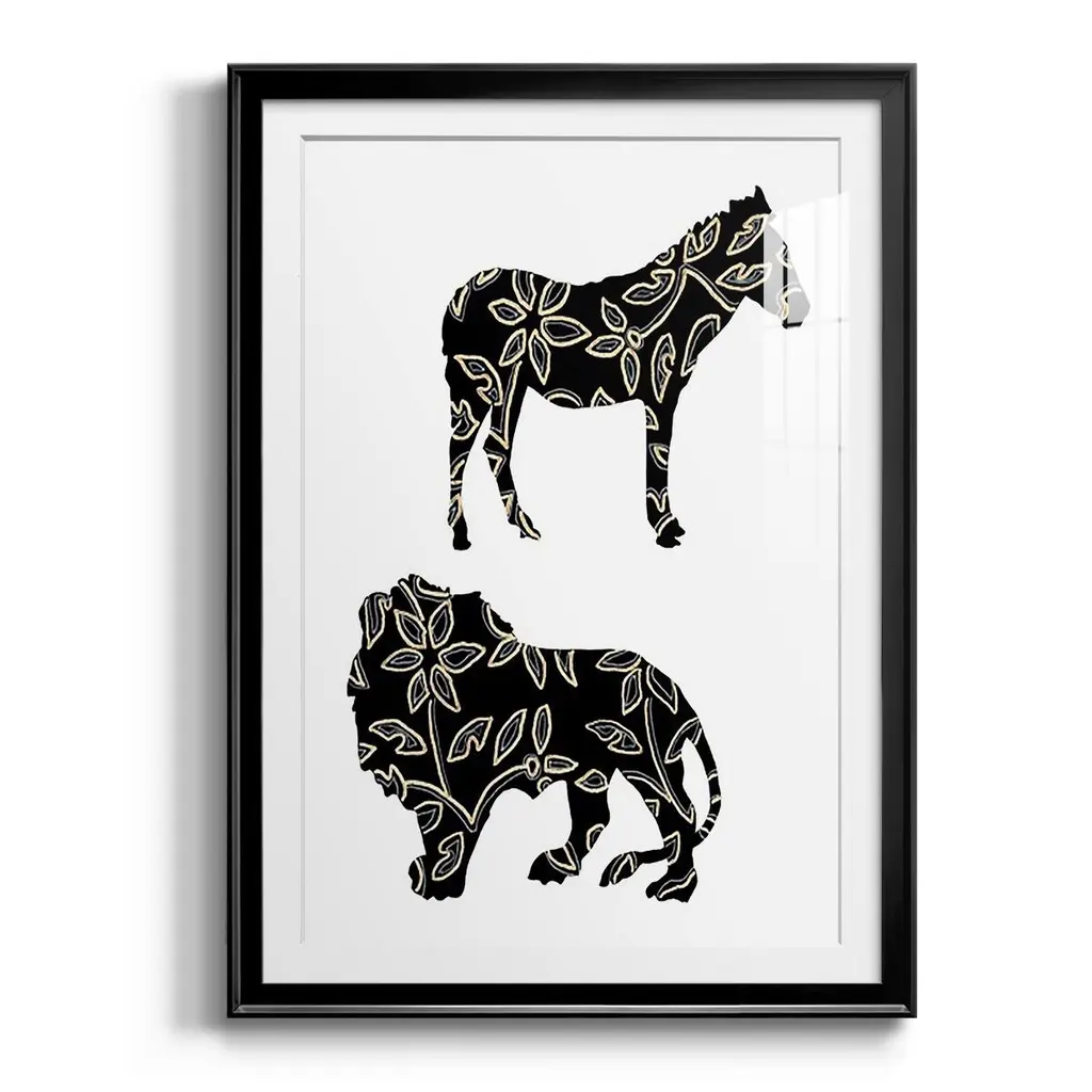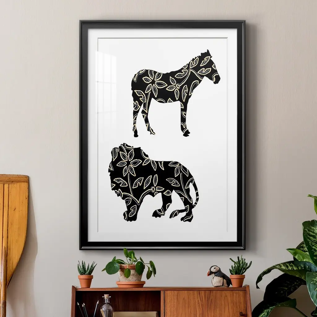 Ornamental Safari Animals I Premium Framed Print - Ready to Hang A Premium Framed Print created to last. Framed in distressed wood and available in an array of sizes and colors Featuring a beveled a solid wood stretcher bar, each piece comes ready to hand 4 SIZES AVAILABLE 30.5''X42.5'' - Overall Size 26.5'X36.5'' - Overall Size 22.5''x30.5'' - Overall Size 18.5''x24.5'' - Overall Size Each piece is made to order. Each piece comes with hanging hardware. Made in the USA Ready to Hang Giclee Paper Print Acrylic Glass Beveled Matt Board