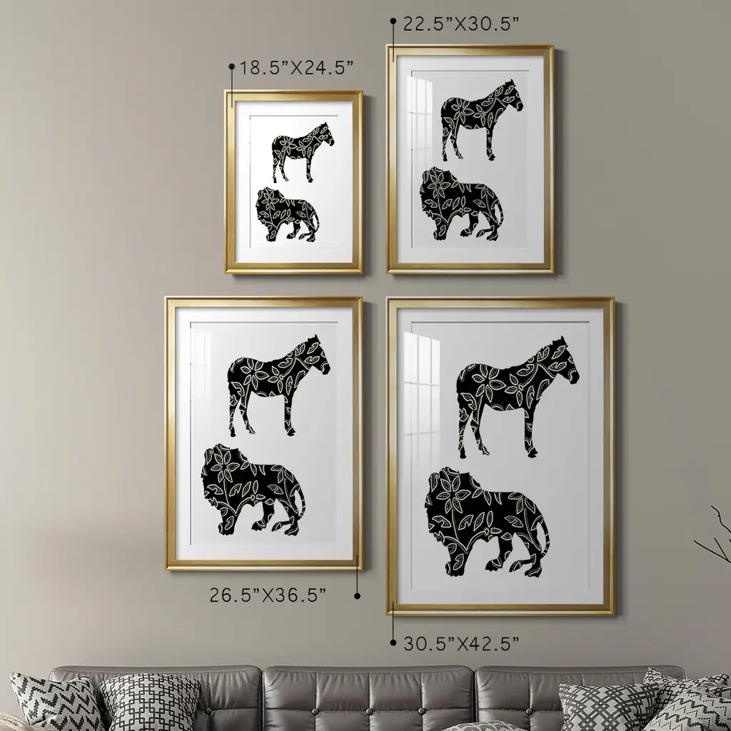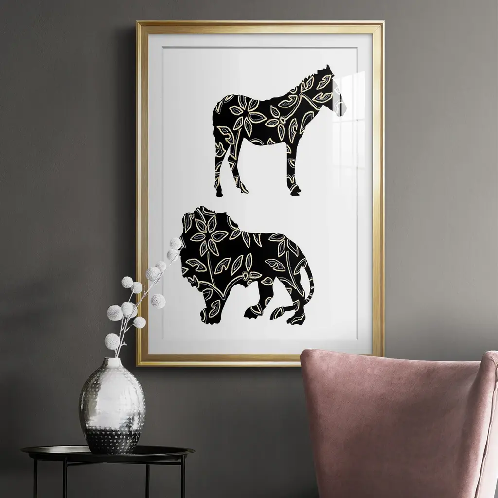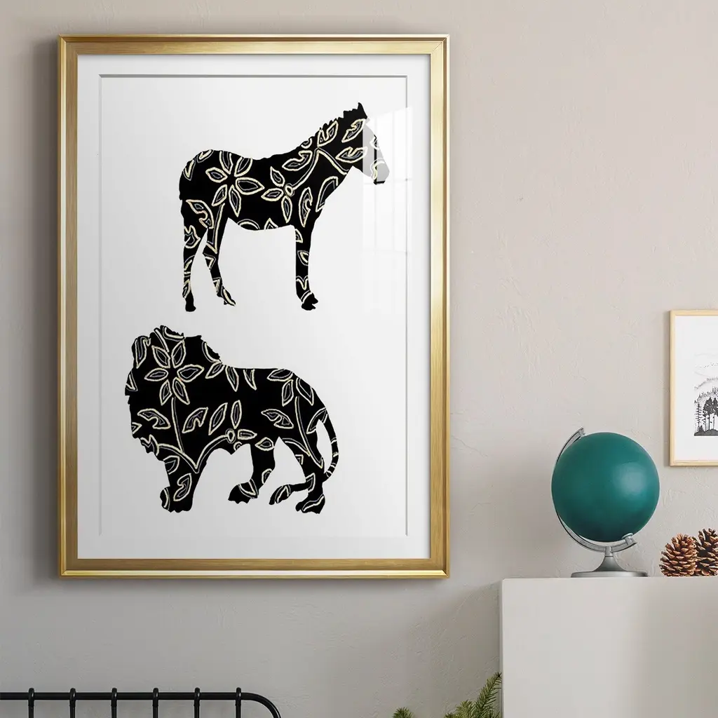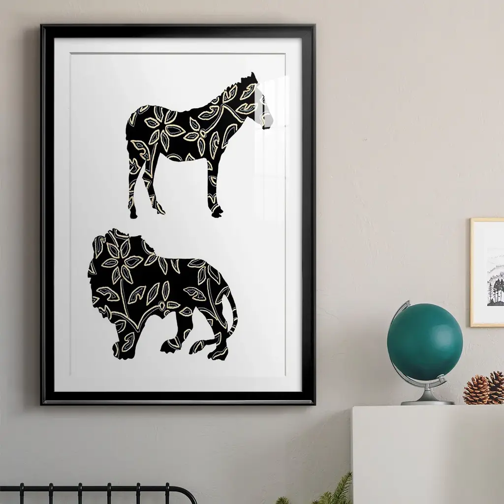 Ornamental Safari Animals I Premium Framed Print - Ready to Hang A Premium Framed Print created to last. Framed in distressed wood and available in an array of sizes and colors Featuring a beveled a solid wood stretcher bar, each piece comes ready to hand 4 SIZES AVAILABLE 30.5''X42.5'' - Overall Size 26.5'X36.5'' - Overall Size 22.5''x30.5'' - Overall Size 18.5''x24.5'' - Overall Size Each piece is made to order. Each piece comes with hanging hardware. Made in the USA Ready to Hang Giclee Paper Print Acrylic Glass Beveled Matt Board