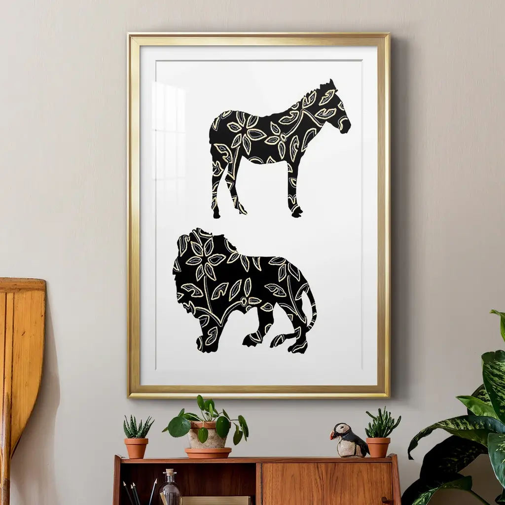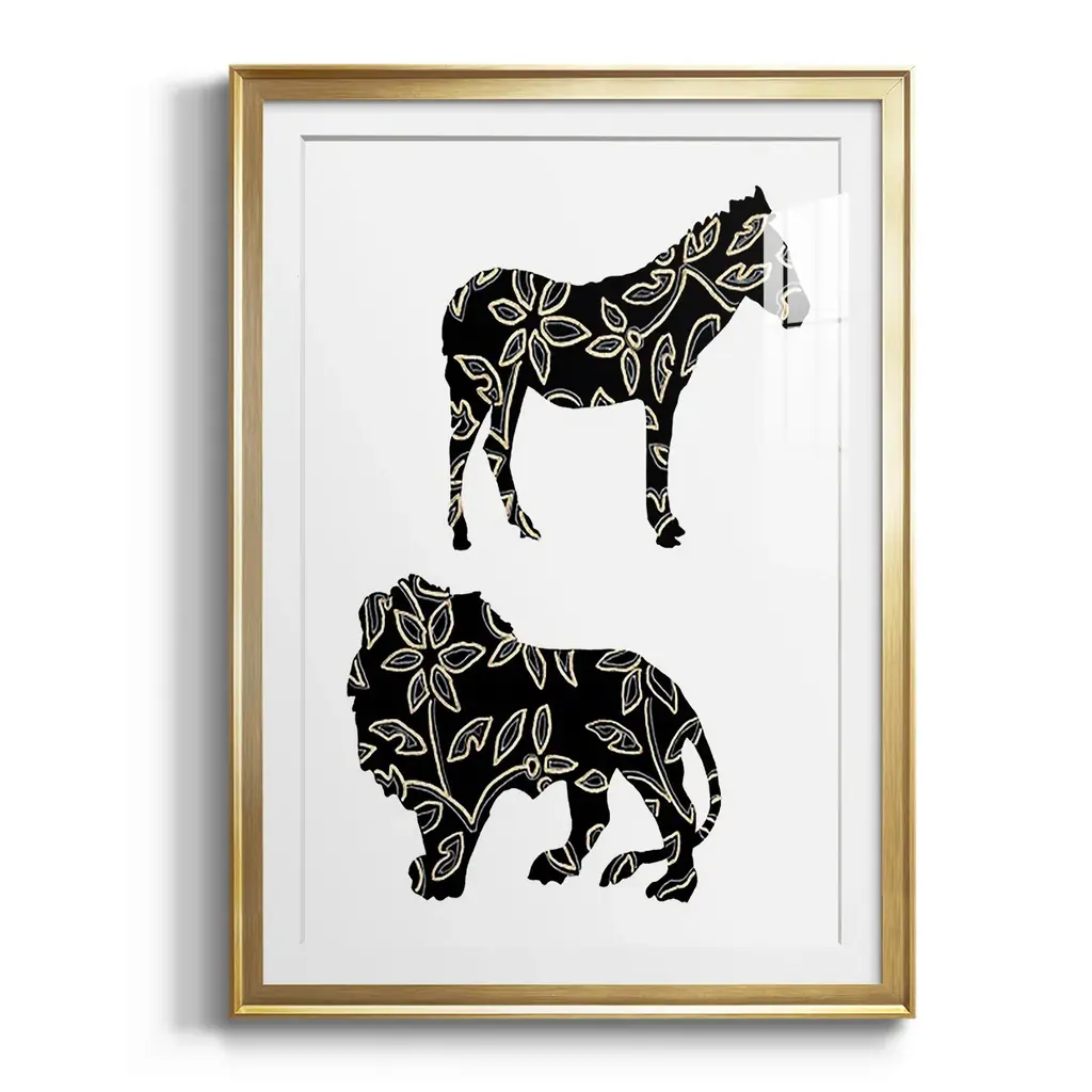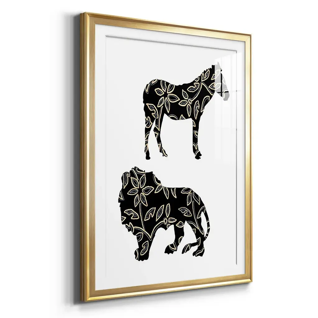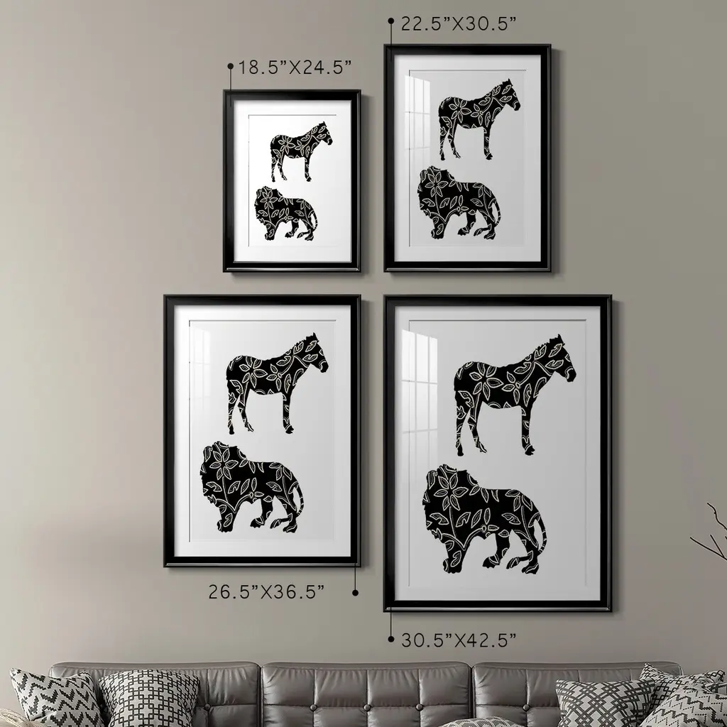 Ornamental Safari Animals I Premium Framed Print - Ready to Hang A Premium Framed Print created to last. Framed in distressed wood and available in an array of sizes and colors Featuring a beveled a solid wood stretcher bar, each piece comes ready to hand 4 SIZES AVAILABLE 30.5''X42.5'' - Overall Size 26.5'X36.5'' - Overall Size 22.5''x30.5'' - Overall Size 18.5''x24.5'' - Overall Size Each piece is made to order. Each piece comes with hanging hardware. Made in the USA Ready to Hang Giclee Paper Print Acrylic Glass Beveled Matt Board