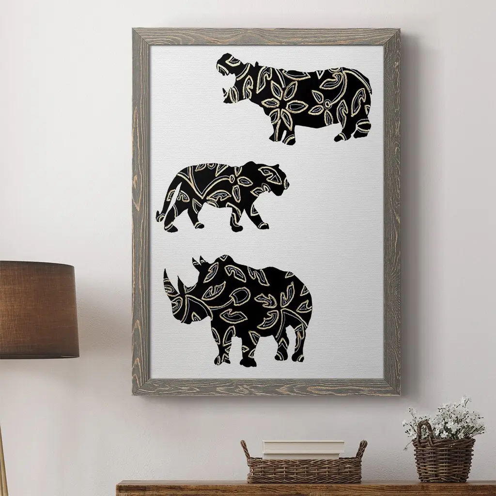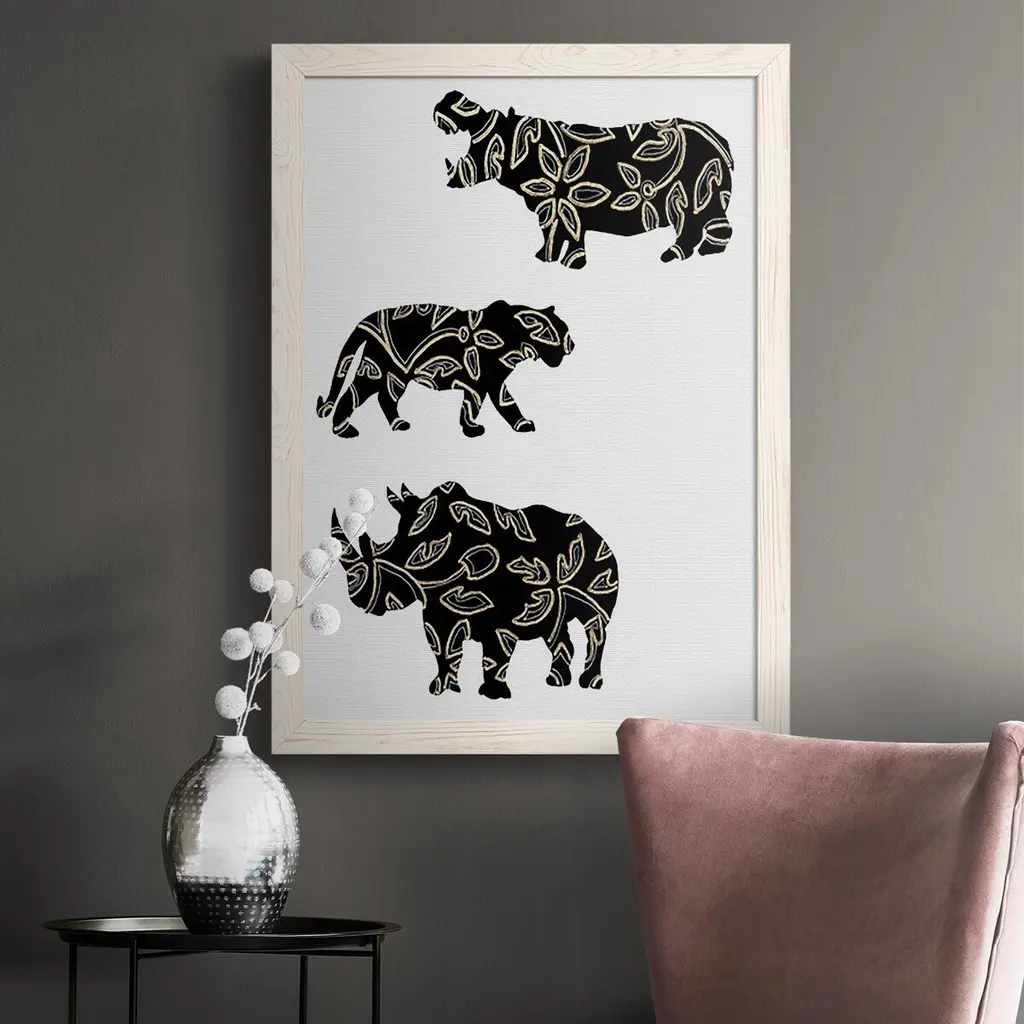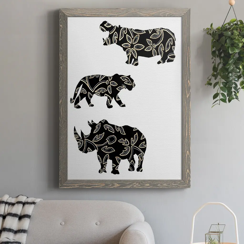 Ornamental Safari Animals Ii-Premium Framed Canvas - Ready To Hang - 27.5x37.5 - Black