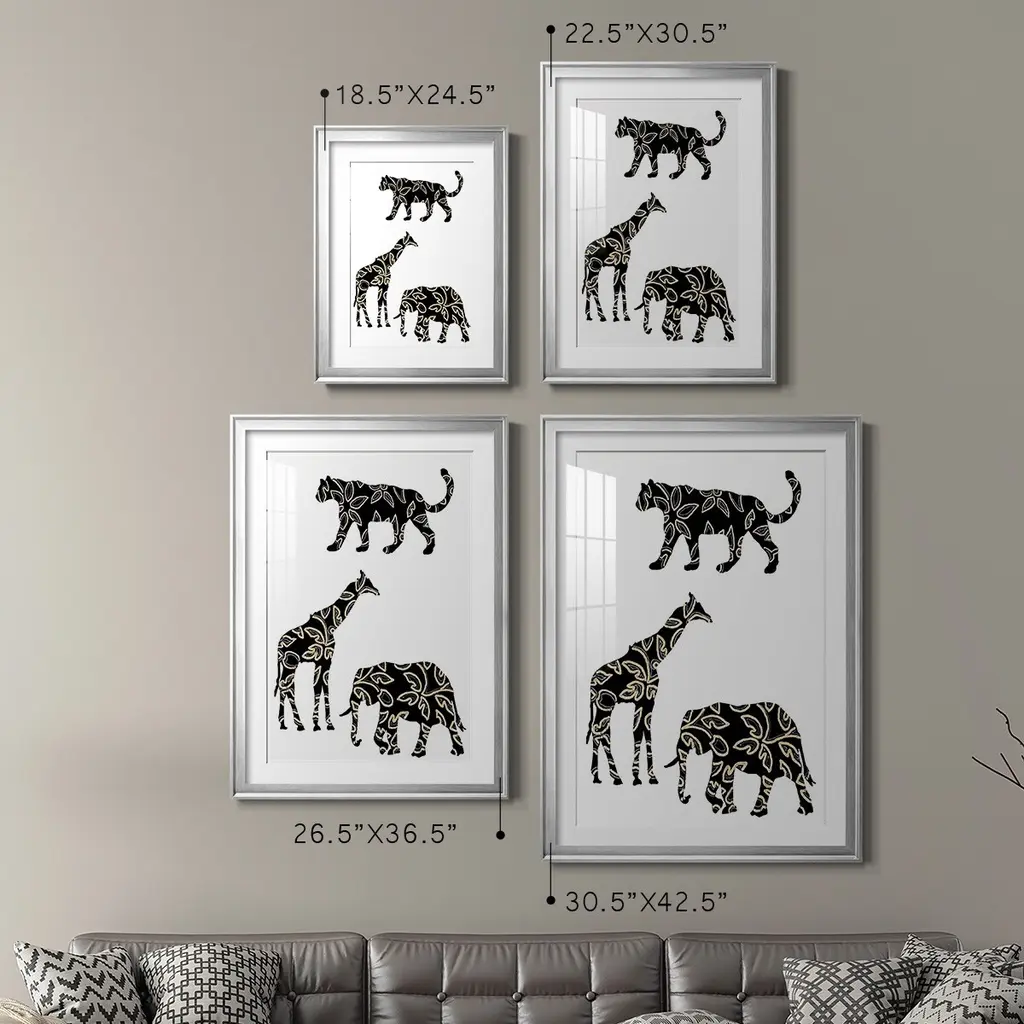 Ornamental Safari Animals III Premium Framed Print - Ready to Hang A Premium Framed Print created to last. Framed in distressed wood and available in an array of sizes and colors Featuring a beveled a solid wood stretcher bar, each piece comes ready to hand 4 SIZES AVAILABLE 30.5''X42.5'' - Overall Size 26.5'X36.5'' - Overall Size 22.5''x30.5'' - Overall Size 18.5''x24.5'' - Overall Size Each piece is made to order. Each piece comes with hanging hardware. Made in the USA Ready to Hang Giclee Paper Print Acrylic Glass Beveled Matt Board