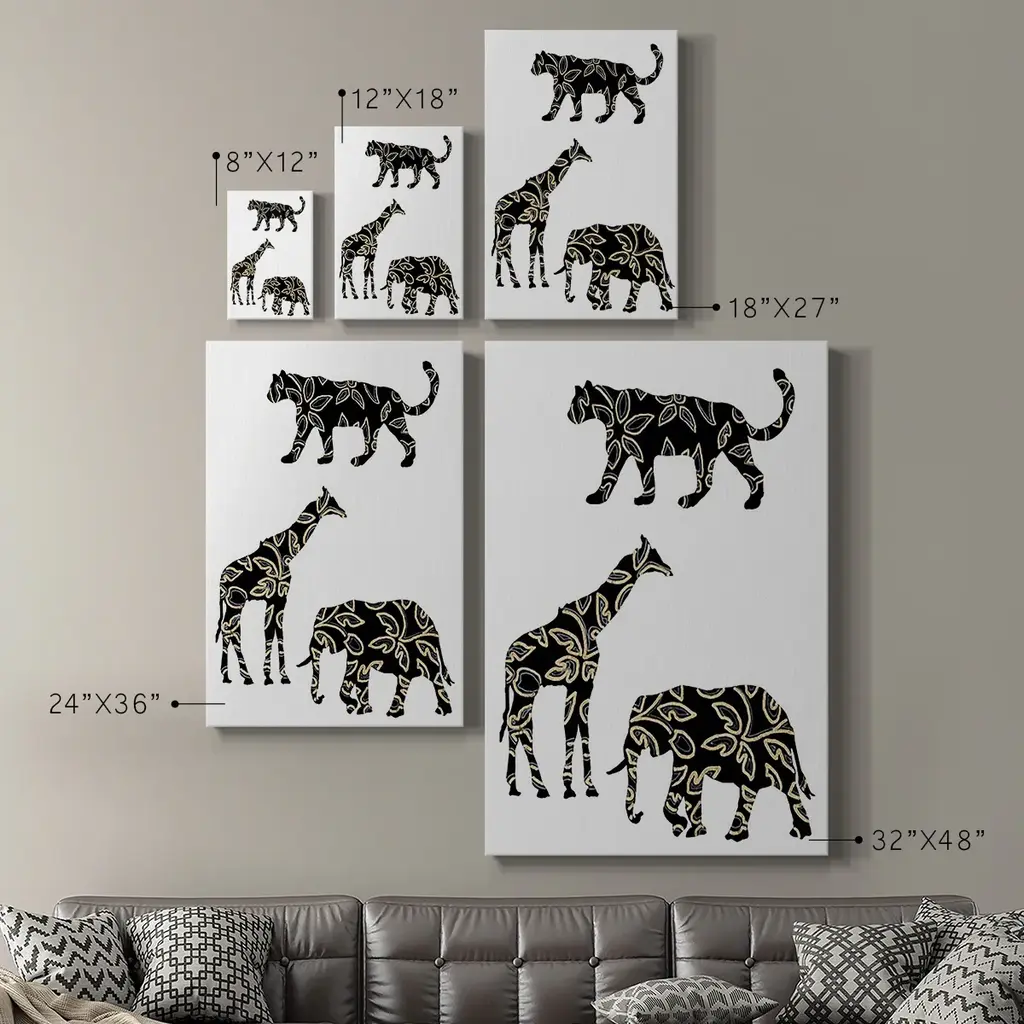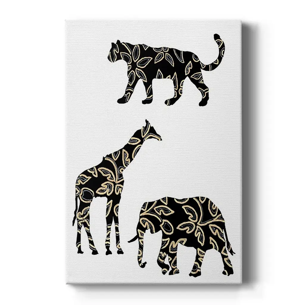 Ornamental Safari Animals III Premium Gallery Wrapped Canvas - Ready to Hang A premium hand stretched gallery wrapped canvas print created to last. Featuring a beveled a solid wood stretcher bar, each piece comes ready to hand 6 SIZES AVAILABLE 8''X12'' - Overall Size 12''X18'' - Overall Size 18''X27'' - Overall Size 24''x36'' - Overall Size 32''x48'' - Overall Size 40''x60'' - Overall Size Each piece is made to order. Built to Last Each piece comes ready to hang Solid wood stretcher Fade and Water resistant Made domestically