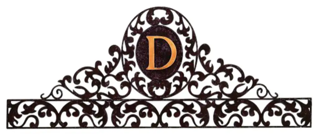 This beautiful wall art is the perfect way to fill empty space above a door or mantle, or to decorate a column or wall. With a lavish leaf, vine and scroll arch motif, its open design allows the wall to show through. It is a breathtaking and imposing piece, with the classic design and attention to detail that you would expect from a high-end luxury boutique. Hooks on the back for easy hanging. Use indoors or outdoors. Please note that if exposed to the elements it will develop a natural patina over time.• 18.5'''' H x 45.5'''' W x 0.5'''' deep. Weight: 8.9 lbs.• Hand Finished Iron. Finished in rustic antiqued brown with taupe highlights.• Monogrammed with 5" Italian Gold iron letter of your choice,or choose a medallion for greater versatility.• Heirloom Quality - Expertly hand crafted and hand finished. Due to the hand crafted nature of this piece, each piece may have subtle differences.