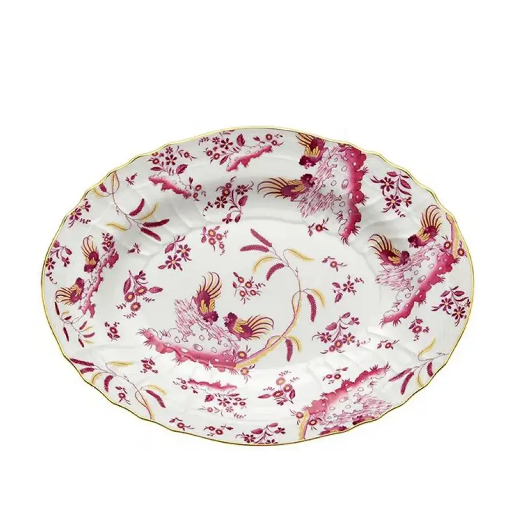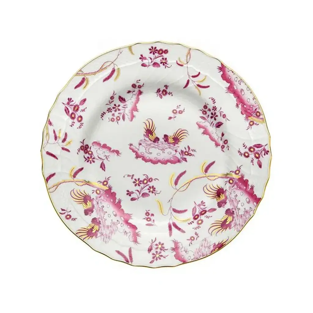 Over the centuries, our Manifattura has collaborated with multiple artists, gifted in knowing how to bring to life splendid designs and motifs to be transformed into decorations with a unique and inimitable flair. In 1740, at the near start of our journey, one of these artists, the Florentine painter Ferdinando Campostrini, created the celebrated floral hatchings featuring Ji Ondori roosters. Elegant animals that symbolize the virtue of boldness according to the oriental traditions the artist held dear. His sketches were expertly rendered as decorative designs for the iconic Vecchio Ginori line, giving life to the timeless Oro di Doccia Ginori gilded porcelain collection. A collection with a staggering and exquisite modernity that spills over onto the porcelain plates and other tableware edged in gold: a long-standing hallmark of ours. The entire collection is available in the shades of light blue, green and red.
