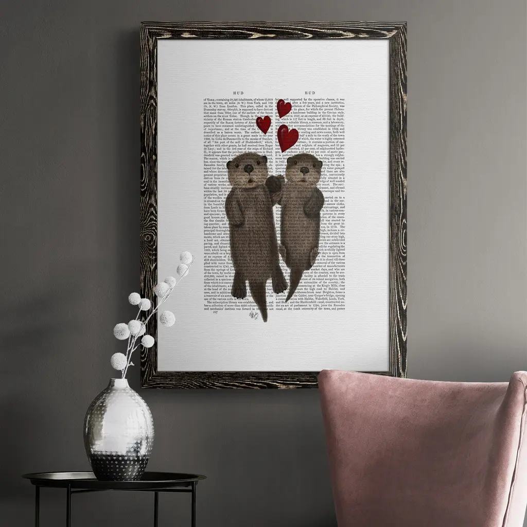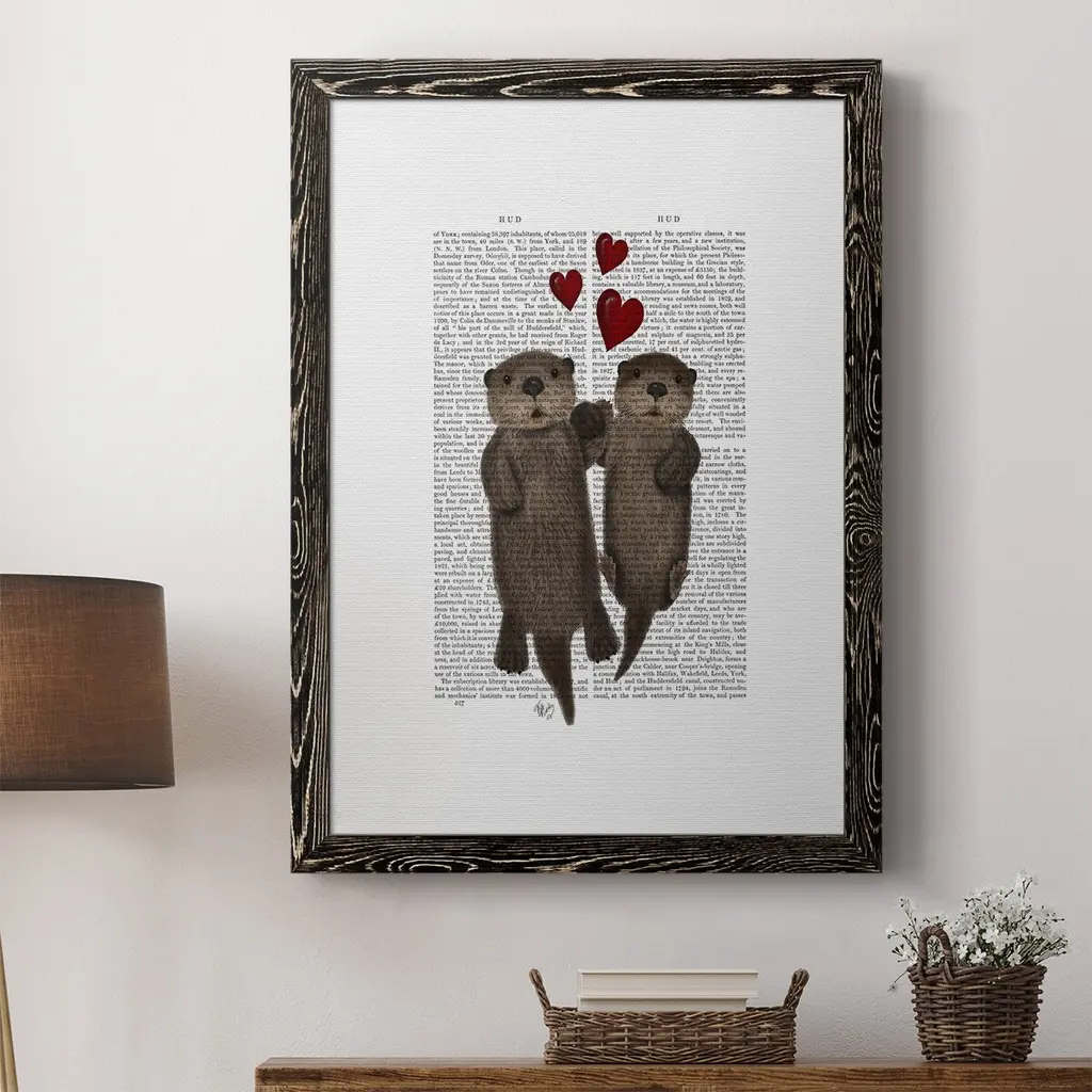 Otters Holding Hands-Premium Framed Canvas - Ready To Hang - 27.5x37.5 - Grey