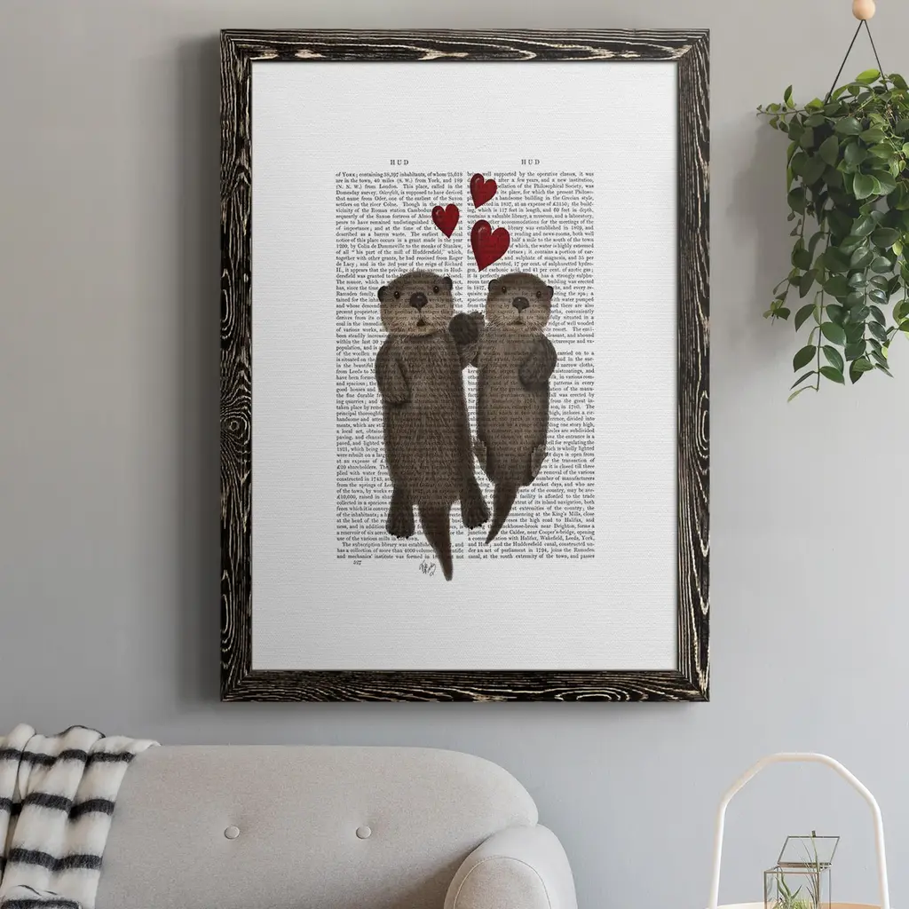 Otters Holding Hands-Premium Framed Canvas - Ready To Hang - 31.5x43.5 - Walnut