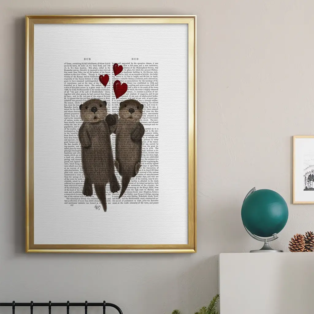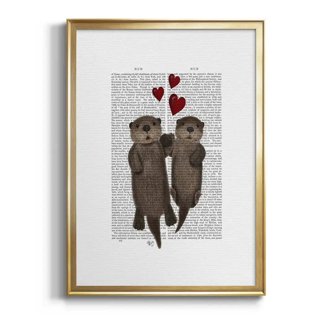 Otters Holding Hands Premium Framed Print - Ready to Hang A Premium Framed Print created to last. Framed in distressed wood and available in an array of sizes and colors Featuring a beveled a solid wood stretcher bar, each piece comes ready to hand 4 SIZES AVAILABLE 30.5''X42.5'' - Overall Size 26.5'X36.5'' - Overall Size 22.5''x30.5'' - Overall Size 18.5''x24.5'' - Overall Size Each piece is made to order. Each piece comes with hanging hardware. Made in the USA Ready to Hang