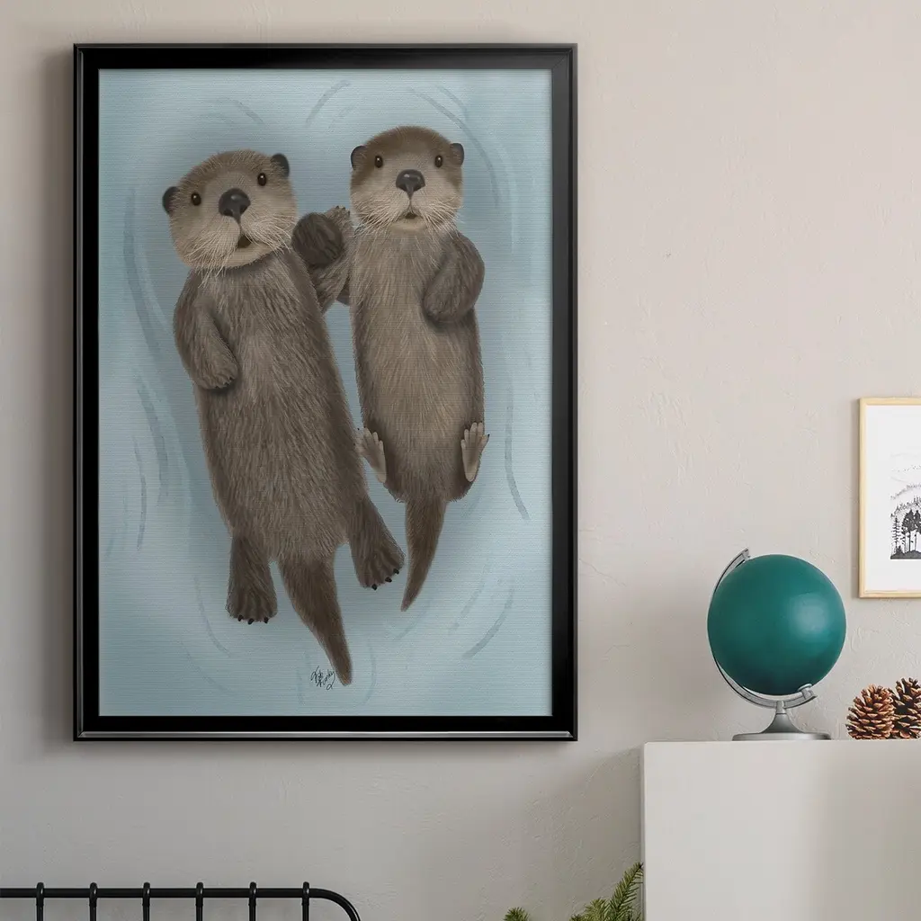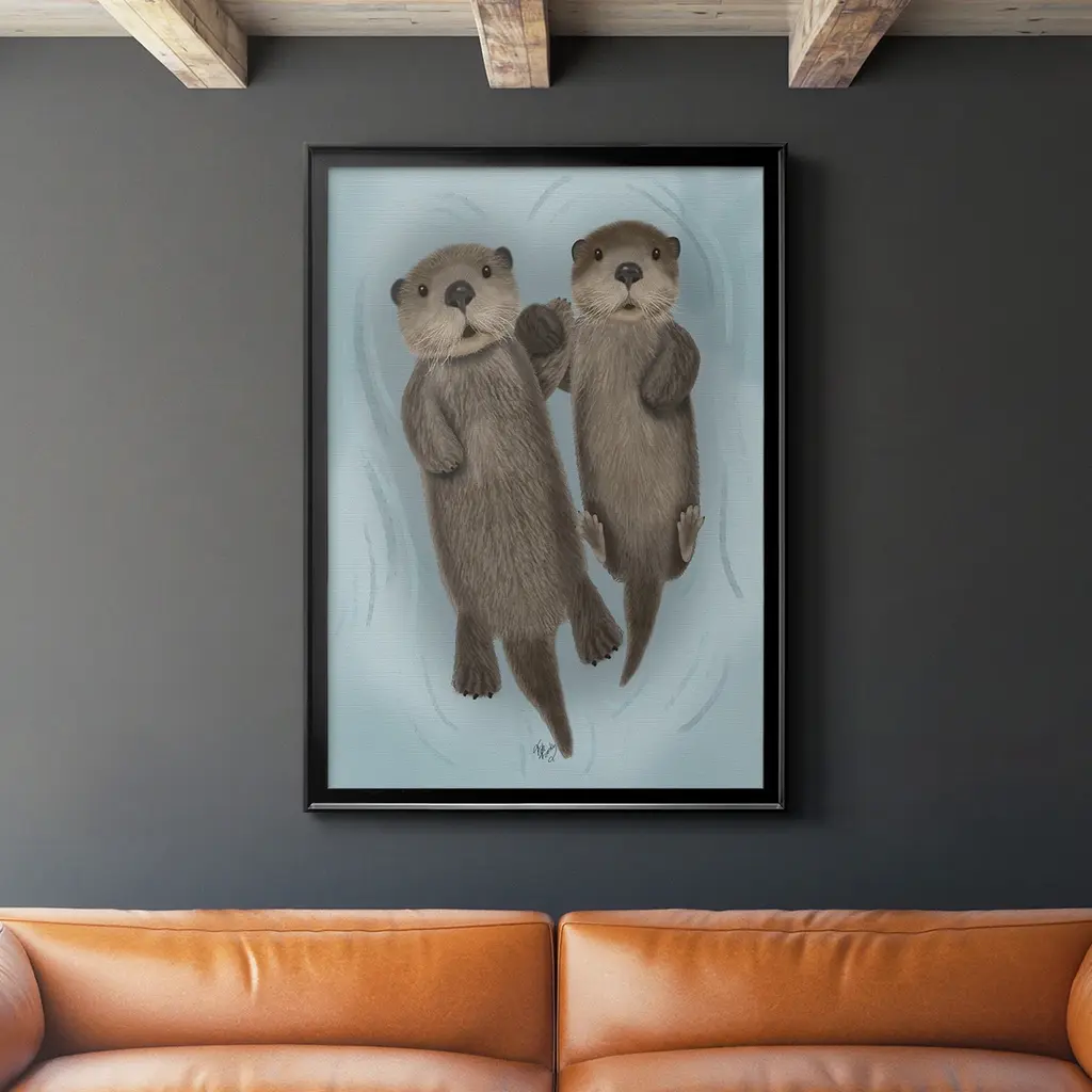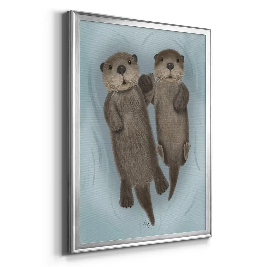 Otters Holding Hands Premium Framed Print - Ready to Hang A Premium Framed Print created to last. Framed in distressed wood and available in an array of sizes and colors Featuring a beveled a solid wood stretcher bar, each piece comes ready to hand 4 SIZES AVAILABLE 30.5''X42.5'' - Overall Size 26.5'X36.5'' - Overall Size 22.5''x30.5'' - Overall Size 18.5''x24.5'' - Overall Size Each piece is made to order. Each piece comes with hanging hardware. Made in the USA Ready to Hang