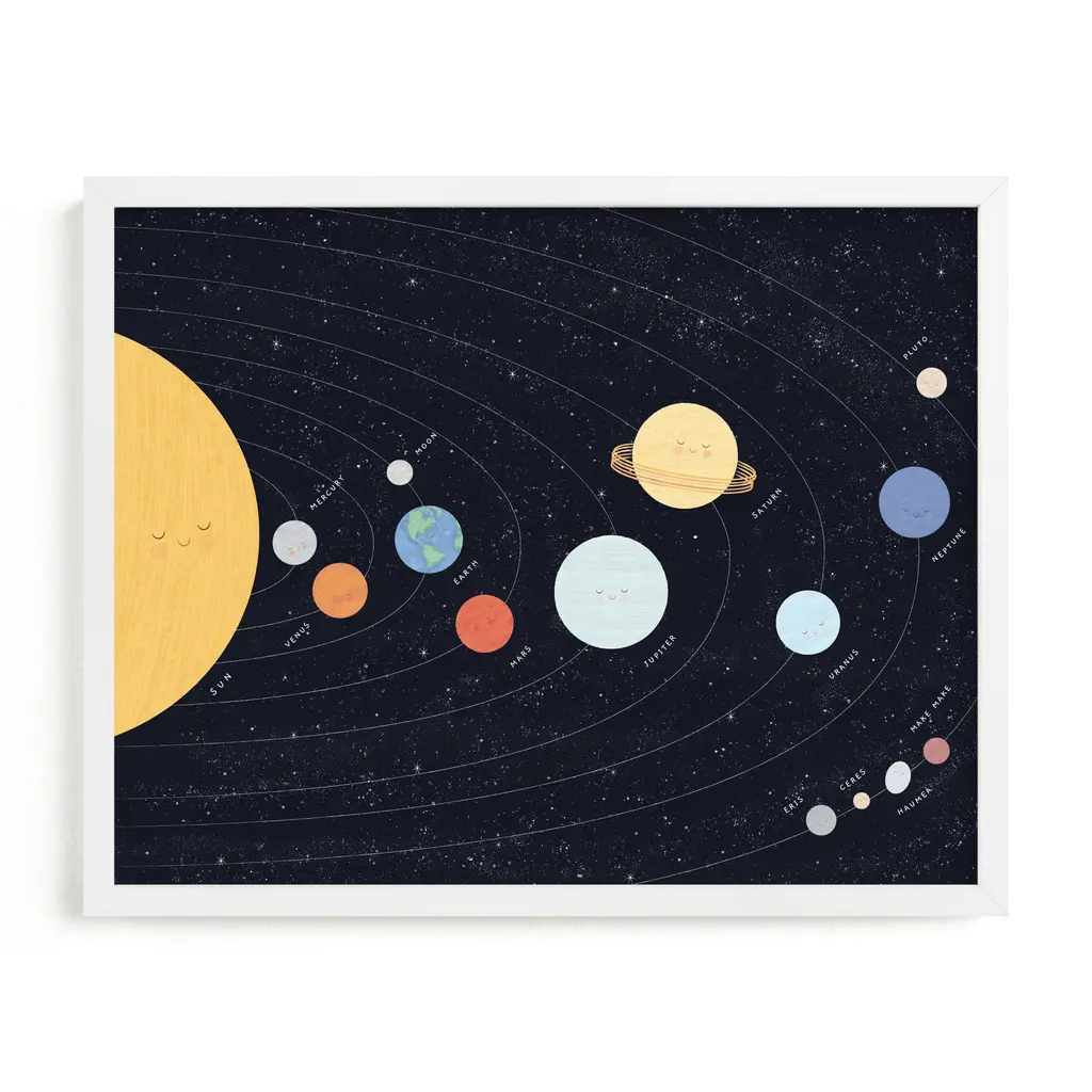 Creative illustration by Sabrin Deirani. A colorful universe for a young lover of space. Supports independent art from around the world. Quick and easy to hang.