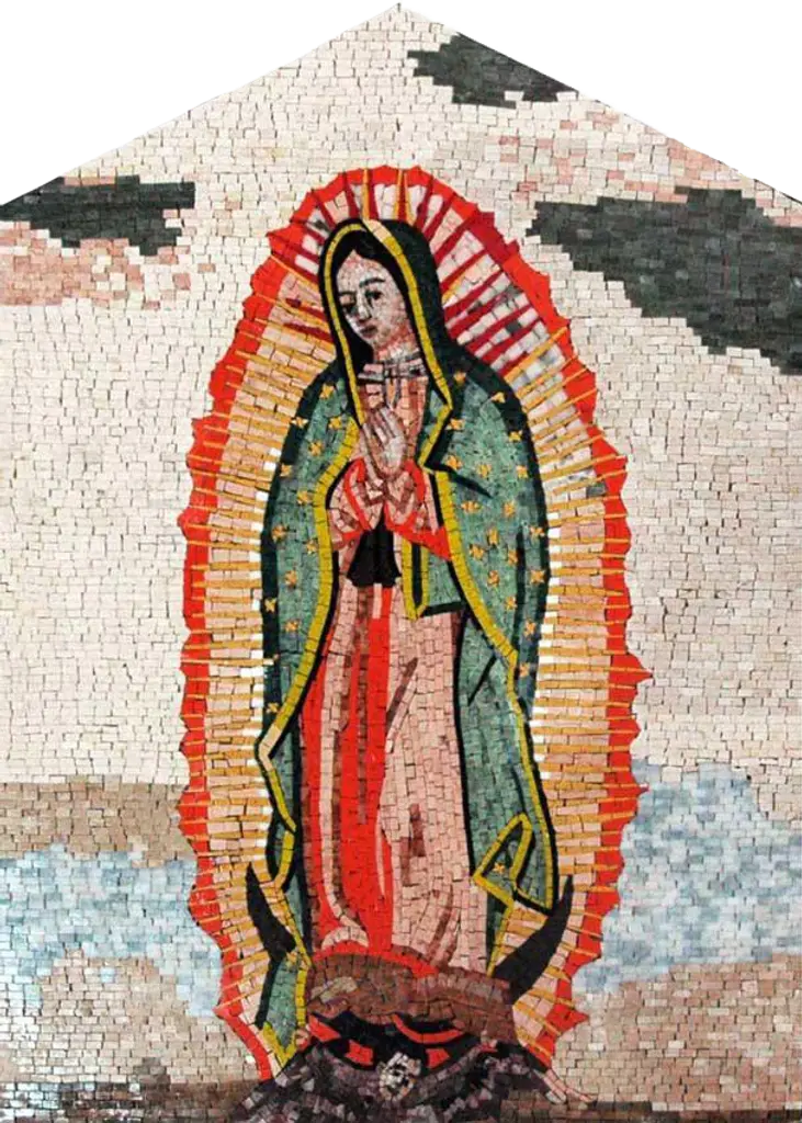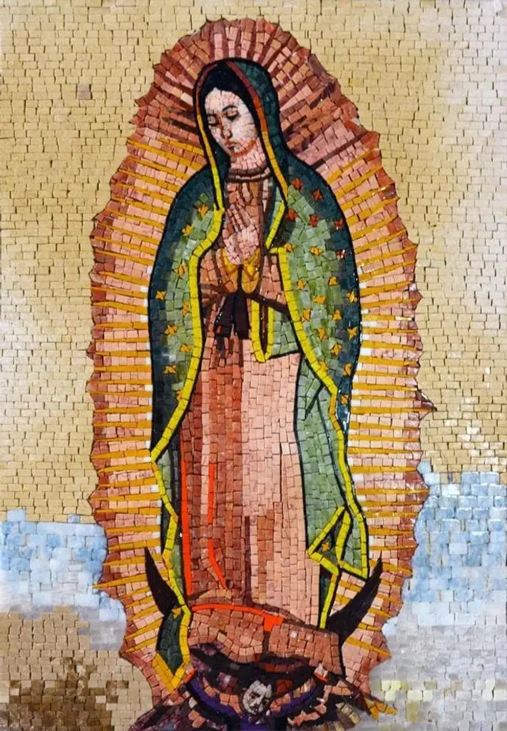 Introducing our exquisite Our Lady of Guadalupe Marble Mosaic Art, a stunning piece that beautifully embodies devotion and craftsmanship. This hand-made mosaic features the revered image of Mary, Our Lady of Guadalupe, renowned for her deep cultural significance and spiritual inspiration.Each mosaic is meticulously crafted by skilled artisans, showcasing the intricate detail and vibrant colors that this beloved icon deserves. The use of high-quality marble ensures that this piece not only stands out visually but is also durable, making it a timeless addition to your home decor or a thoughtful gift for a loved one. This artwork serves as a powerful reminder of faith and spirituality, perfect for display in your living room, chapel, or personal prayer space. Its detailed craftsmanship captures the grace and compassion of Our Lady, inviting a sense of peace and reverence into your surroundings. With its unique design and artistry, this mosaic is not just a decoration; it is a celebration of heritage and belief. The Our Lady of Guadalupe Marble Mosaic Art is perfect for those who appreciate religious art and want to make a statement in their homes. Elevate your space with this beautiful representation of love and grace, and allow its serene presence to inspire daily reflection and devotion. Make this extraordinary piece a part of your collection or gift it to someone special as a cherished keepsake. Embrace the beauty of faith through art with our Our Lady of Guadalupe Marble Mosaic Art.