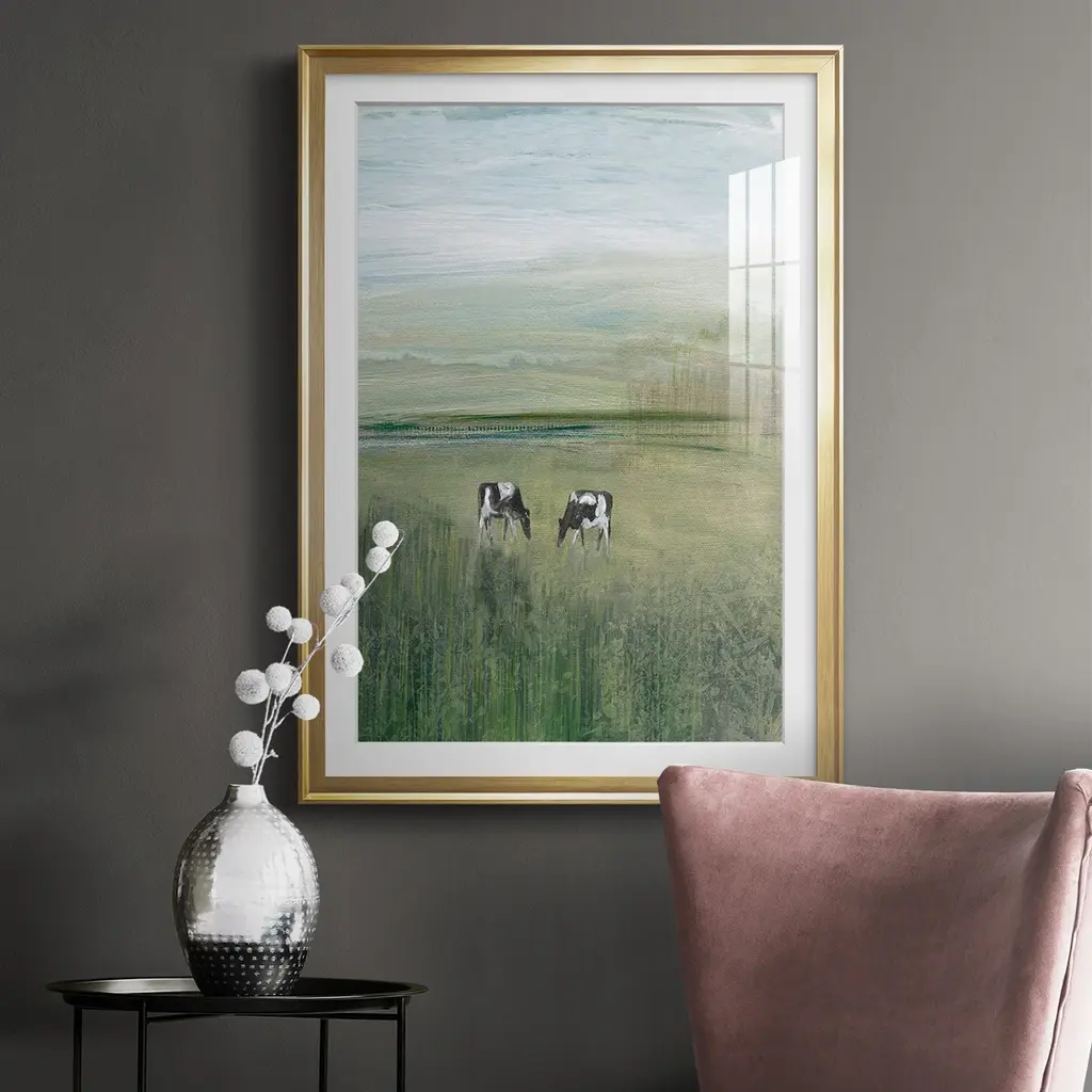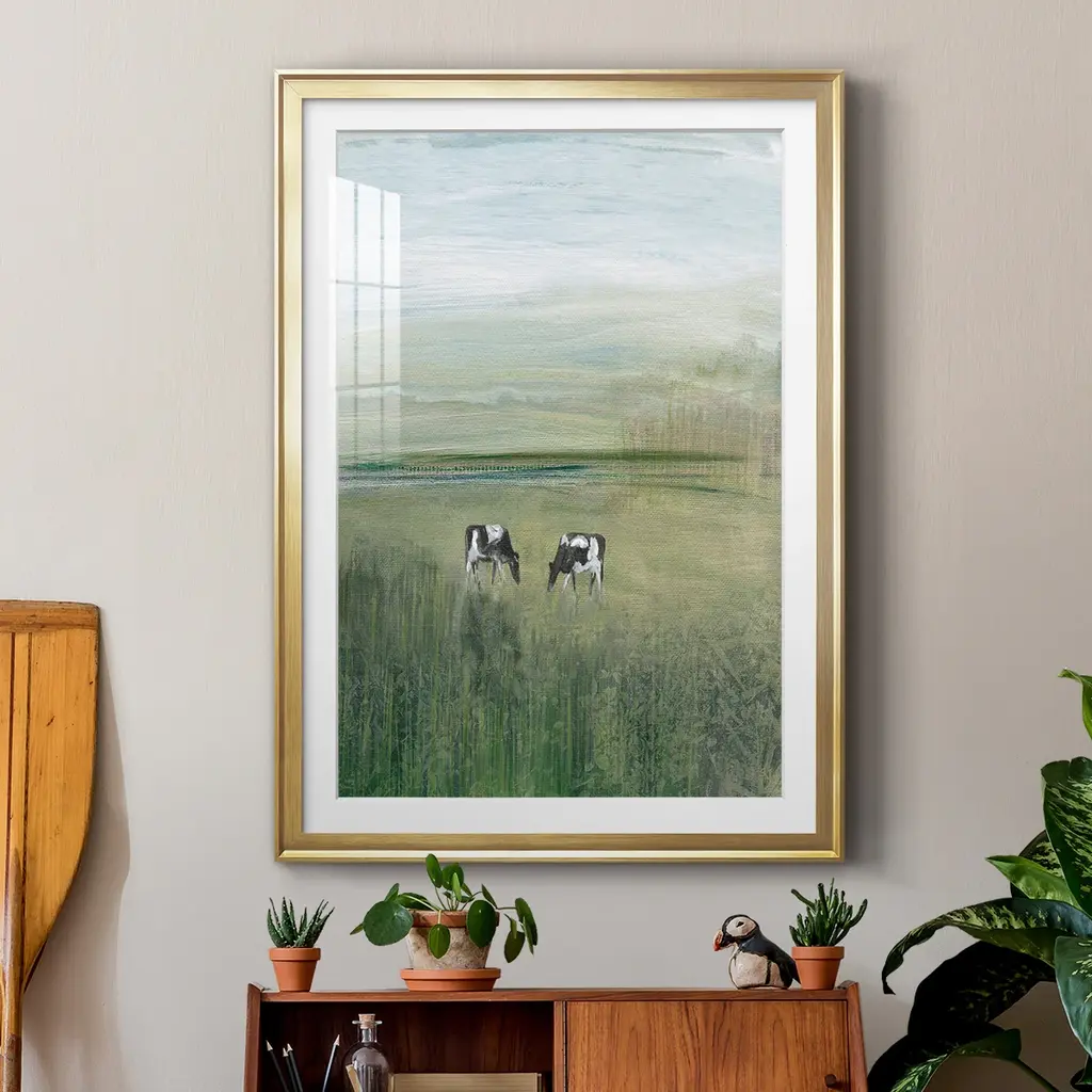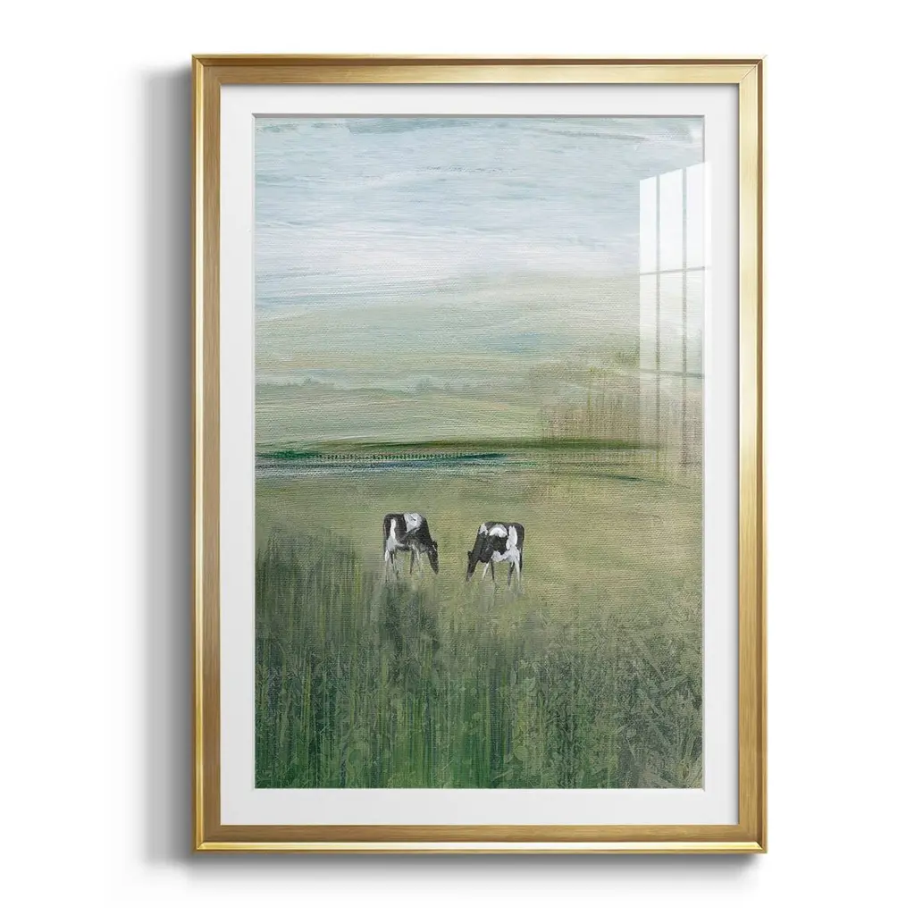 Out to Pasture II Premium Framed Print - Ready to Hang A Premium Framed Print created to last. Framed in distressed wood and available in an array of sizes and colors Featuring a beveled a solid wood stretcher bar, each piece comes ready to hand 4 SIZES AVAILABLE 30.5''X42.5'' - Overall Size 26.5'X36.5'' - Overall Size 22.5''x30.5'' - Overall Size 18.5''x24.5'' - Overall Size Each piece is made to order. Each piece comes with hanging hardware. Made in the USA Ready to Hang Giclee Paper Print Acrylic Glass Beveled Matt Board