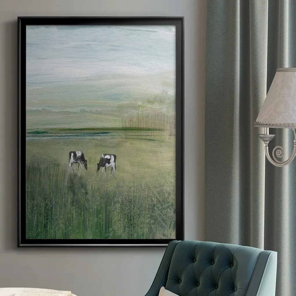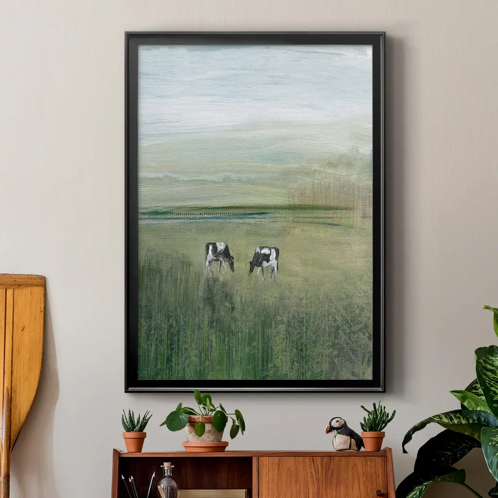 Out to Pasture II Premium Framed Print - Ready to Hang A Premium Framed Print created to last. Framed in distressed wood and available in an array of sizes and colors Featuring a beveled a solid wood stretcher bar, each piece comes ready to hand 4 SIZES AVAILABLE 30.5''X42.5'' - Overall Size 26.5'X36.5'' - Overall Size 22.5''x30.5'' - Overall Size 18.5''x24.5'' - Overall Size Each piece is made to order. Each piece comes with hanging hardware. Made in the USA Ready to Hang
