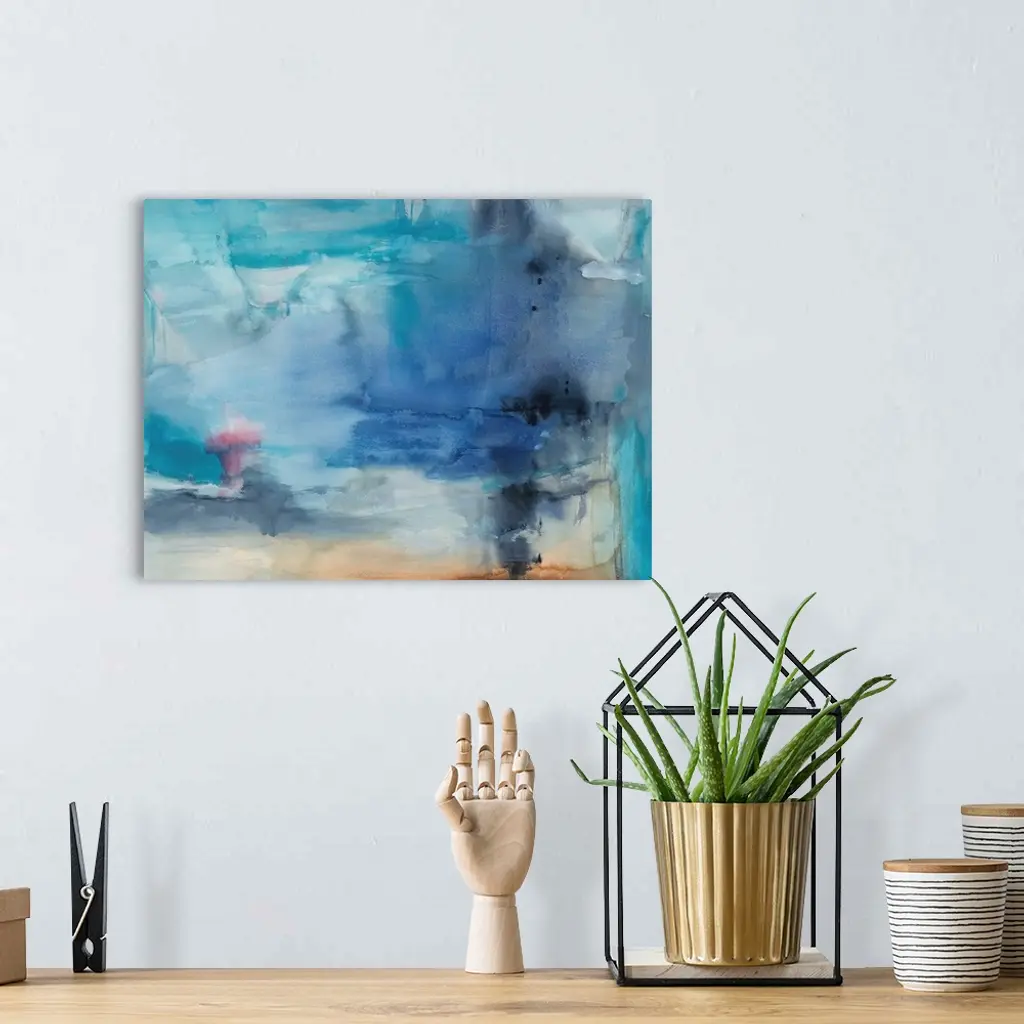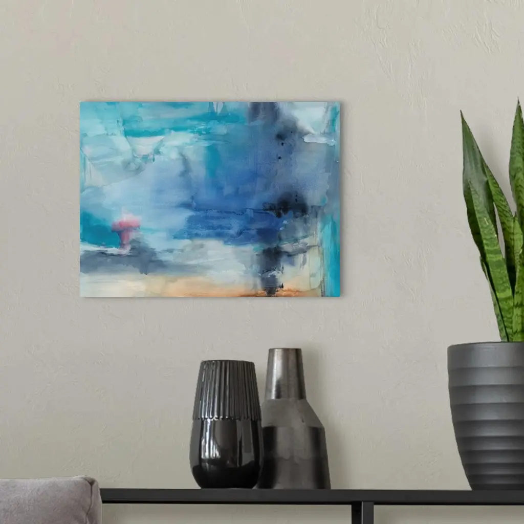 A contemporary abstract painting using predominantly blue