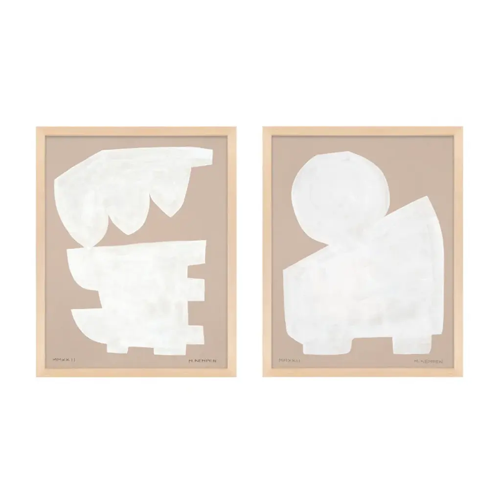 Artist Michael Kempen’s work finds a meditative quality in the balance of irregular shapes. This four-piece print set is an homage to the mid-century abstract paintings of Ellsworth Kelly + Robert Motherwell. Each piece is printed on paper in the USA + arrives ready to hang in a wooden frame.