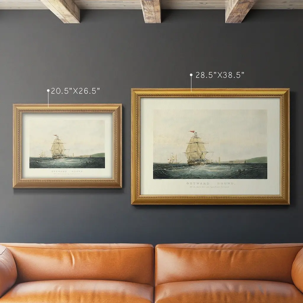 Outward Bound Premium Framed Canvas- Ready to Hang A Premium Framed Canvas created to last. Framed in distressed wood and available in an array of sizes and colors Featuring a beveled a solid wood stretcher bar, each piece comes ready to hand 3 SIZES AVAILABLE 16''X20'' - Overall Size 18'X27'' - Overall Size 24''x36'' - Overall Size Each piece is made to order. Each piece comes with hanging hardware. Made in the USA Ready to Hang Giclee Paper Print Acrylic Glass Beveled Matt Board