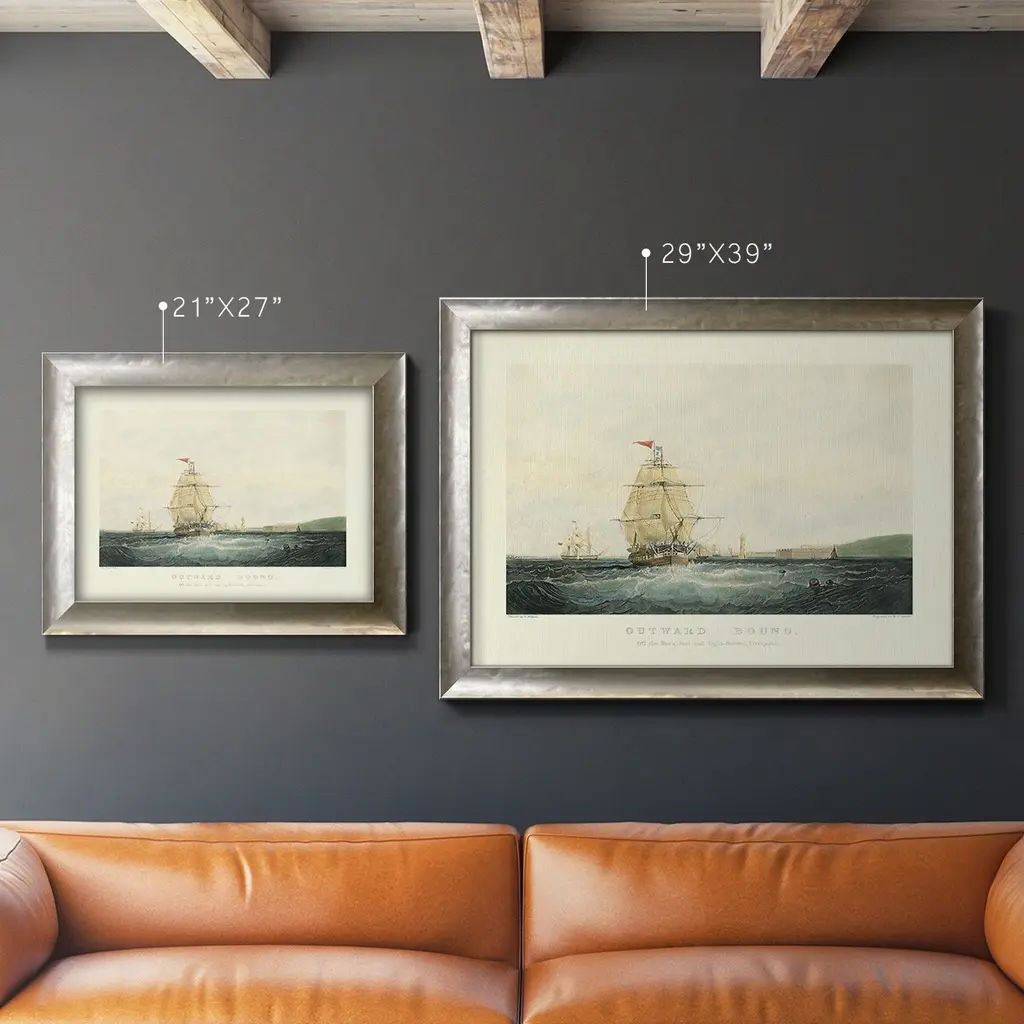 Outward Bound Premium Framed Canvas- Ready to Hang A Premium Framed Canvas created to last. Framed in distressed wood and available in an array of sizes and colors Featuring a beveled a solid wood stretcher bar, each piece comes ready to hand 3 SIZES AVAILABLE 16''X20'' - Overall Size 18'X27'' - Overall Size 24''x36'' - Overall Size Each piece is made to order. Each piece comes with hanging hardware. Made in the USA Ready to Hang Giclee Paper Print Acrylic Glass Beveled Matt Board