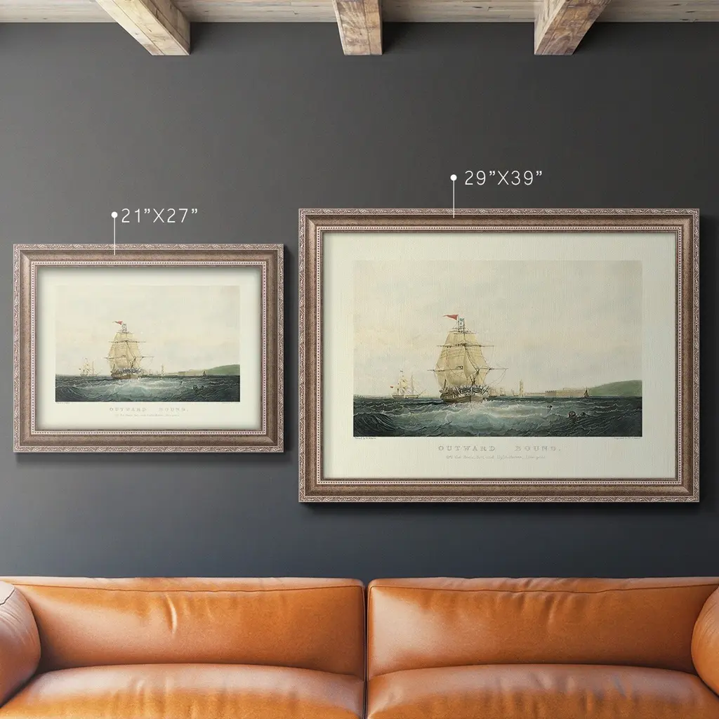 Outward Bound Premium Framed Canvas- Ready to Hang A Premium Framed Canvas created to last. Framed in distressed wood and available in an array of sizes and colors Featuring a beveled a solid wood stretcher bar, each piece comes ready to hand 3 SIZES AVAILABLE 16''X20'' - Overall Size 18'X27'' - Overall Size 24''x36'' - Overall Size Each piece is made to order. Each piece comes with hanging hardware. Made in the USA Ready to Hang Giclee Paper Print Acrylic Glass Beveled Matt Board
