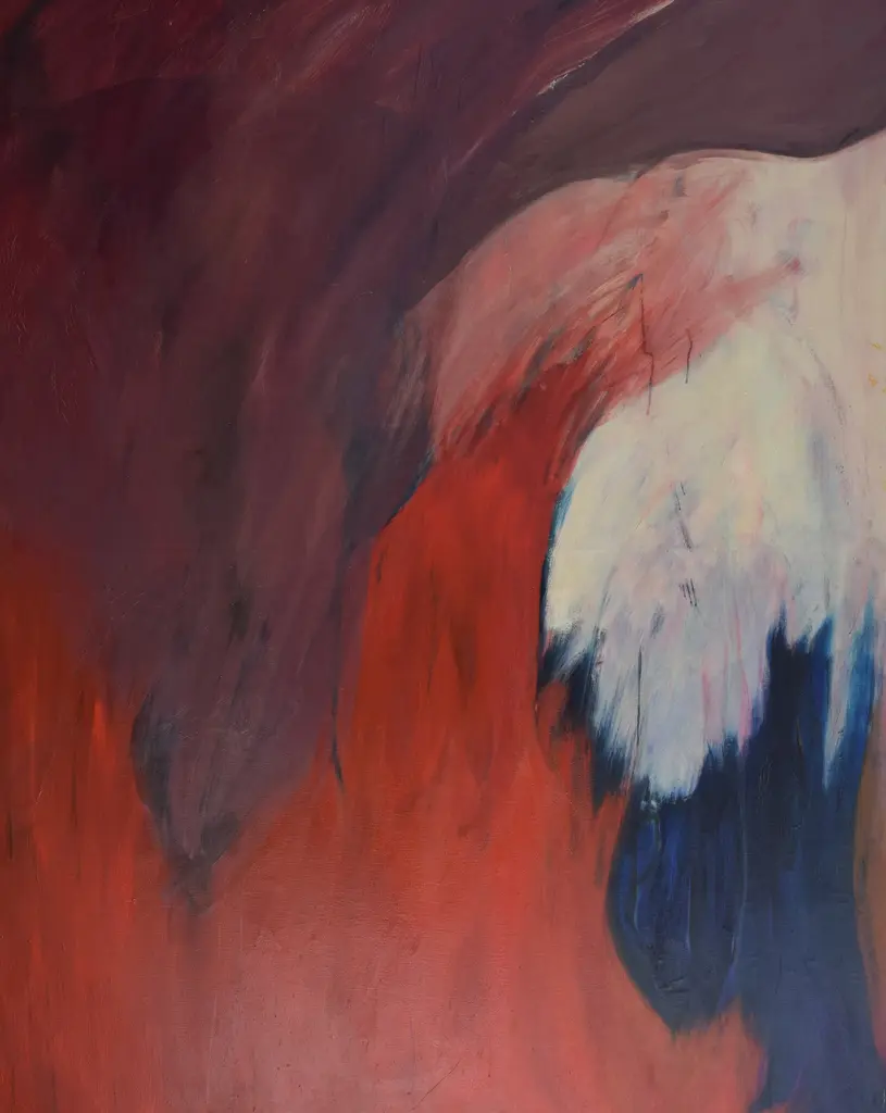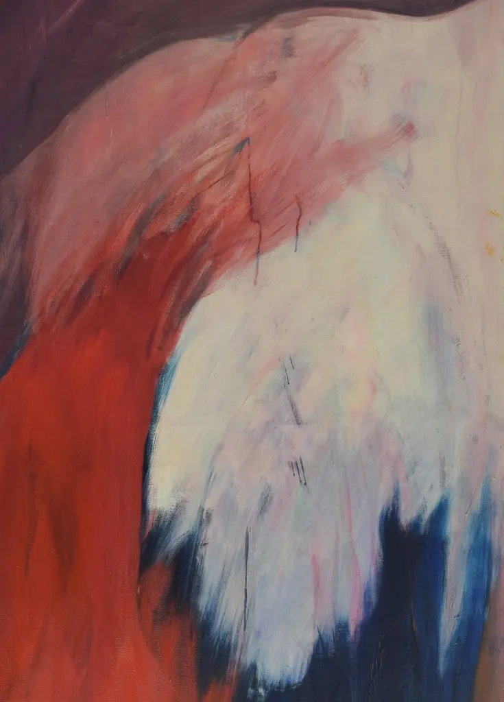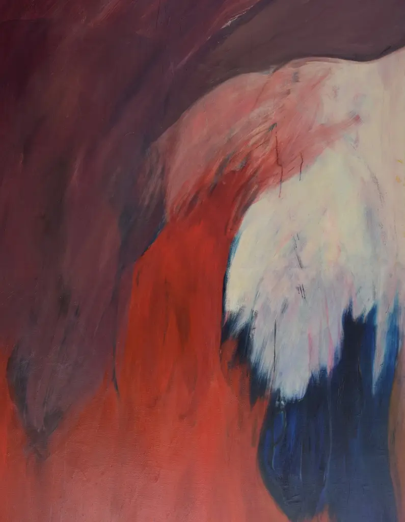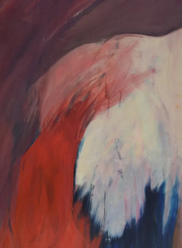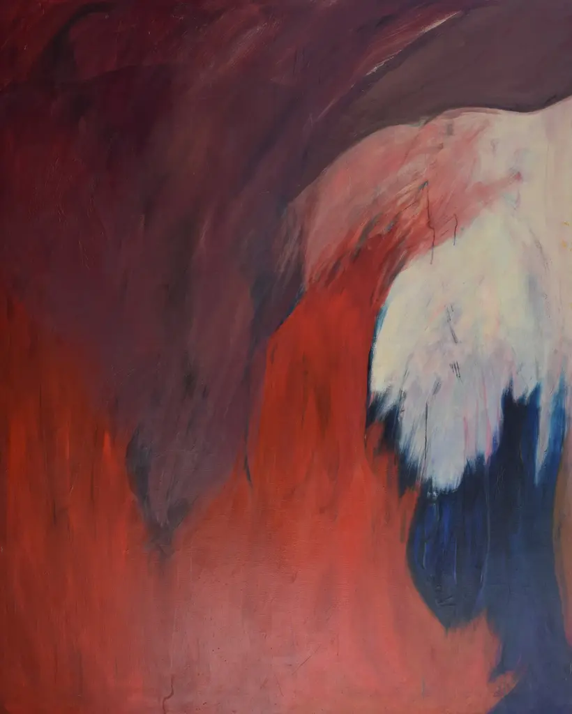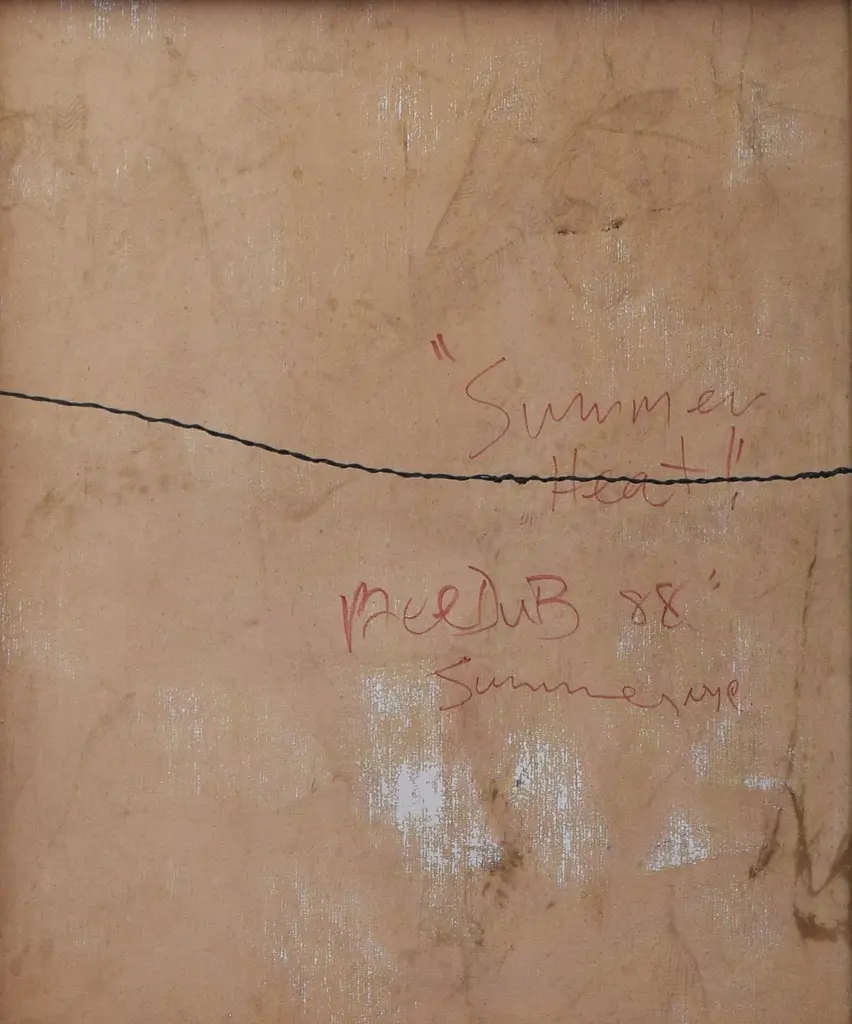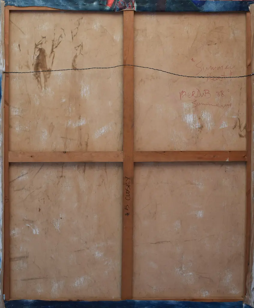 Vintage oversized abstract expressionist painting titled "Summer Heat" dated 1988 and signed Beedub NYC on verso. Canvas/Stretcher: 77.75"x64.5"Framed: 78.25" x 65"Some subtle crazing that doesn��t seem to be damage but rather an effect with the drying paint.