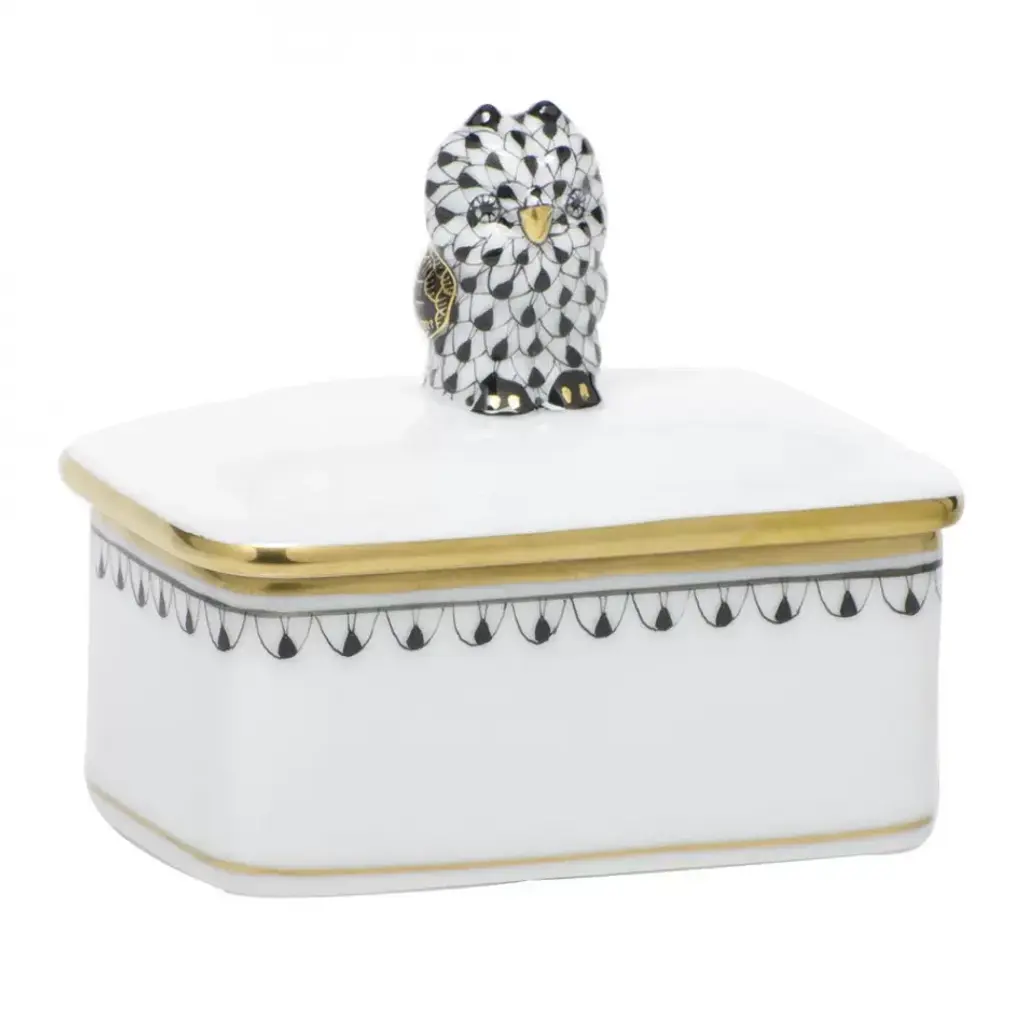 Endearing animals meek and bold, large and small, demure and majestic eagerly await the chance to melt your heart and warm your home. Each is brought to life by the skilled hands of artisans crafting and painting these charming porcelain creatures. The famous fishnet décor adorning many of the animals took form in 1858 when a Herend painter became inspired by a fishscale design he saw on a Chinese porcelain plate and painted a similar pattern onto a rooster figurine to imitate feathers. The rest is history, with the fishnet design now a Herend signature prized worldwide. Now the biggest porcelain manufactory in Europe, Herend was founded in 1826 to produce earthenware in the small Hungarian village for which it was named. At the time, Hungary was flooded with low-cost pottery, but in 1839, Mor Fischer became the Manufactory’s new owner and he decided to focus on producing dinnerware replacement pieces for Europe’s royal families to complement their valuable porcelain patterns from Germany and the Far East. As his client base grew, Fischer commissioned his artists to begin designing dinnerware patterns of their own. Queen Victoria’s 1851 purchase of a large set for Windsor Castle was a milestone, setting the stage for aristocrats throughout Europe to clamor for Herend in their estates. In the 1850s, Herend added meticulously-crafted figurines to its creations. Herend’s trademark fishnet pattern, which is widely recognized and prized as Herend’s signature design, started in 1858 when an artist who was intrigued with a Chinese plate’s fish scale design painted it onto a rooster figurine to imitate feathers.