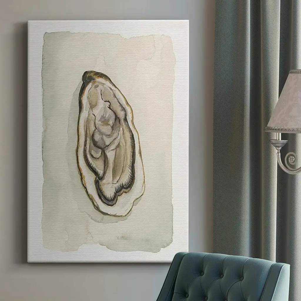 Inspired by their magnificent essence and diversity, a study of oysters and their intricacies are expertly replicated. Create a collection of multiples for a stunning art display. Art pieces can either be unframed (print only), or framed in a choice of archival wood frames or within an image clear acrylic frame. If unframed, a choice of additional “frameless” hanging options are available. The added-on framing options are shipped disassembled from the artwork. Hanging kits come complete with everything needed to hang a single print, including easy instructions. No damage is done to the print upon utilizing the hangers.