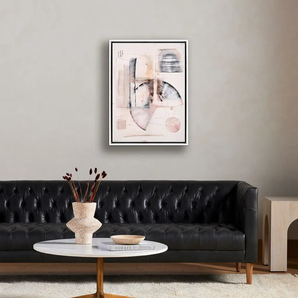 The minds behind Black Bird Art Co, Texas-based artists Michael and Rachael Gagnon, create abstract, inspirational art. Pacmoon is assembled by hand with an elegant floater frame.