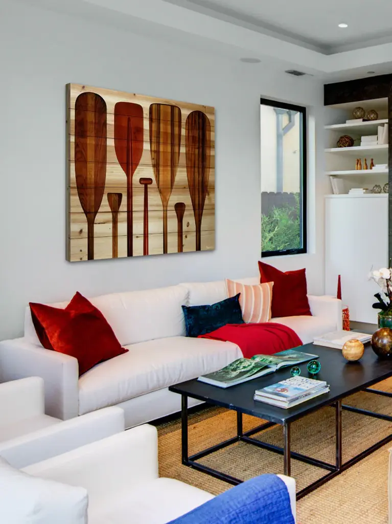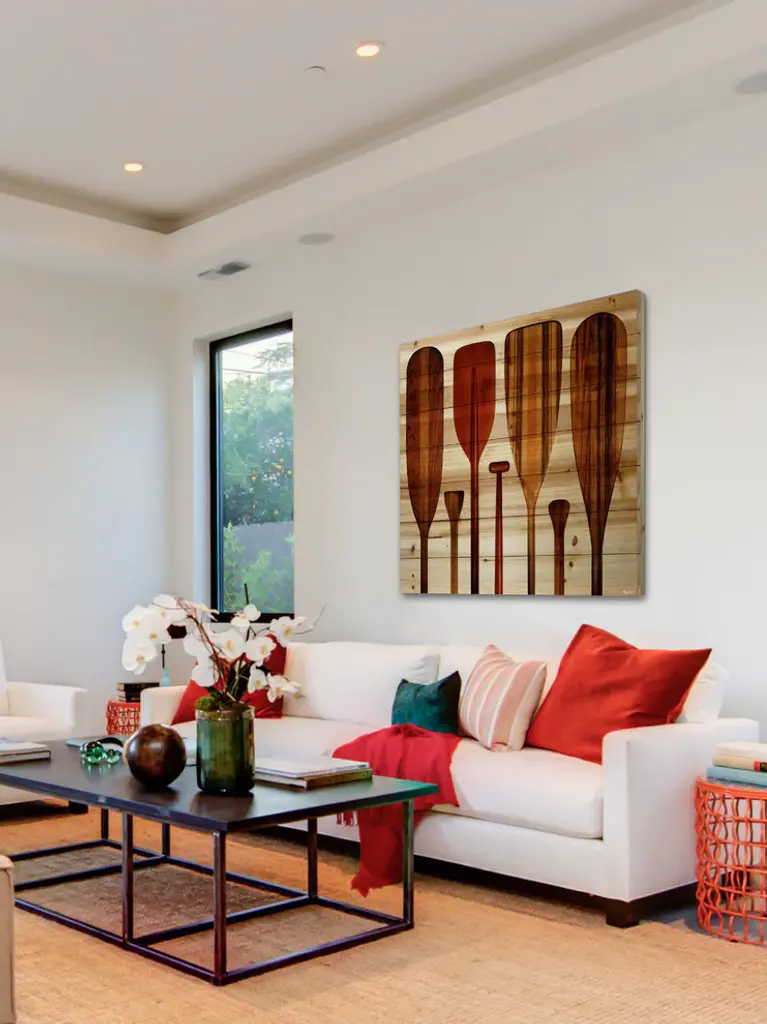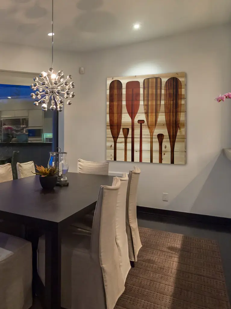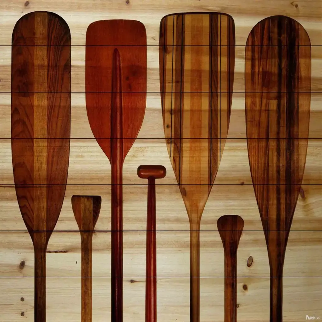 Striking and unique, the "Paddles" Wall Art on Wood by Parvez Taj will bring your walls to life. Printed on white pine wood, this 24 inch wide by 24 inch tall beach style artwork will make a statement in any living room, dining room, or bedroom.- Fine art print on wood by Parvez Taj- wood pieces are hand-selected by Fine craftsmen for printing- Arrives ready to hang- Includes a certificate of authenticity- Artist signature on the front