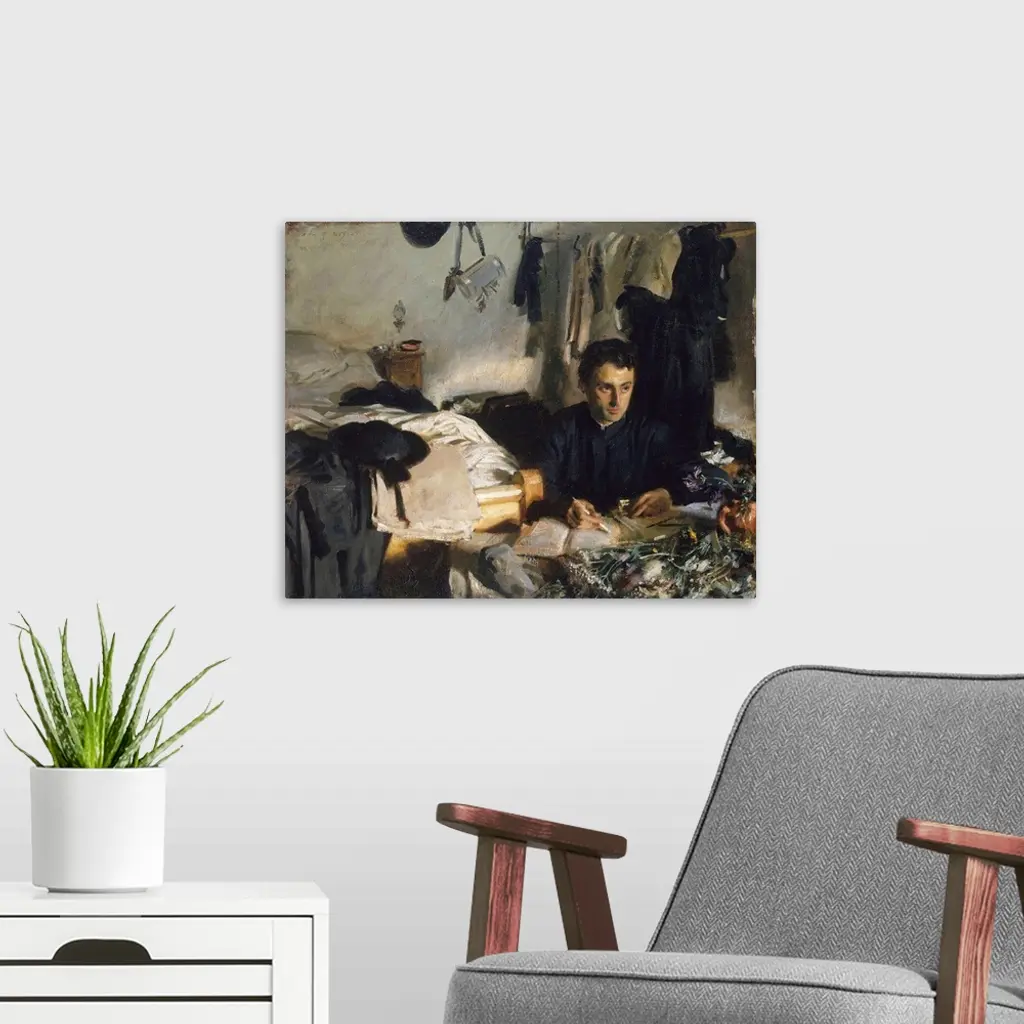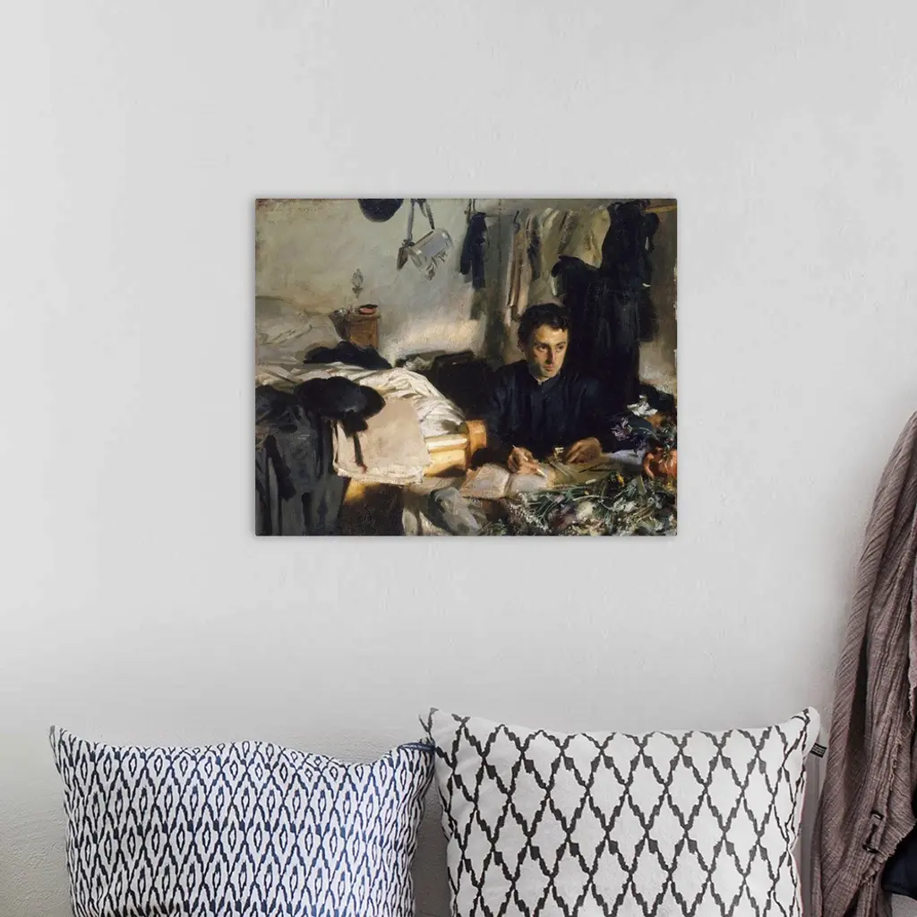 Sargent's sister described Padre Sebastiano, whom the artist met while on holiday at Giomein, a village in the Italian Alps, as a botanizing priest. Sargent captured the cleric's thoughtful demeanor and conveyed his interest in nature by showing him making notes about the flowers that cover the table in his cluttered bedroom. The Metropolitan purchased this painting directly from the artist in 1910. It represents a noteworthy departure from Sargent's formal commissioned portraits.