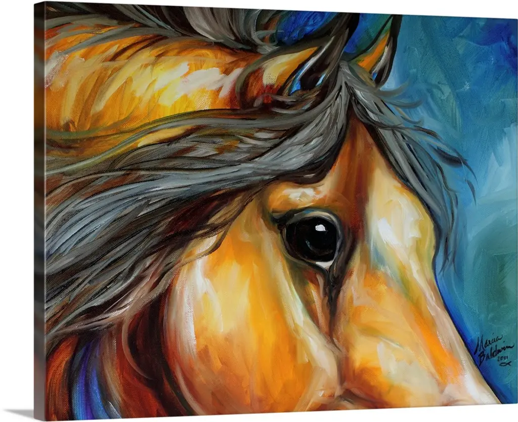 Contemporary painting of a brown and white hose with hints of blue, orange, and purple through out.