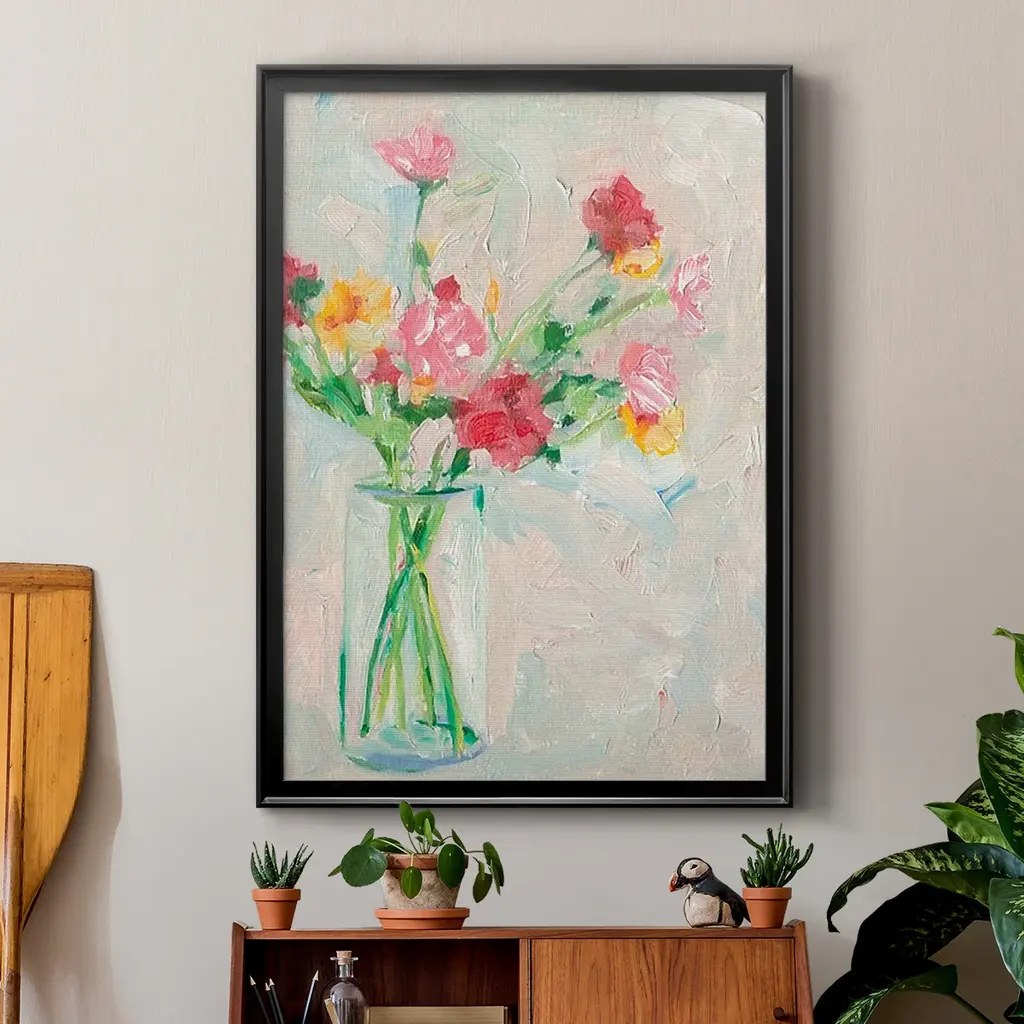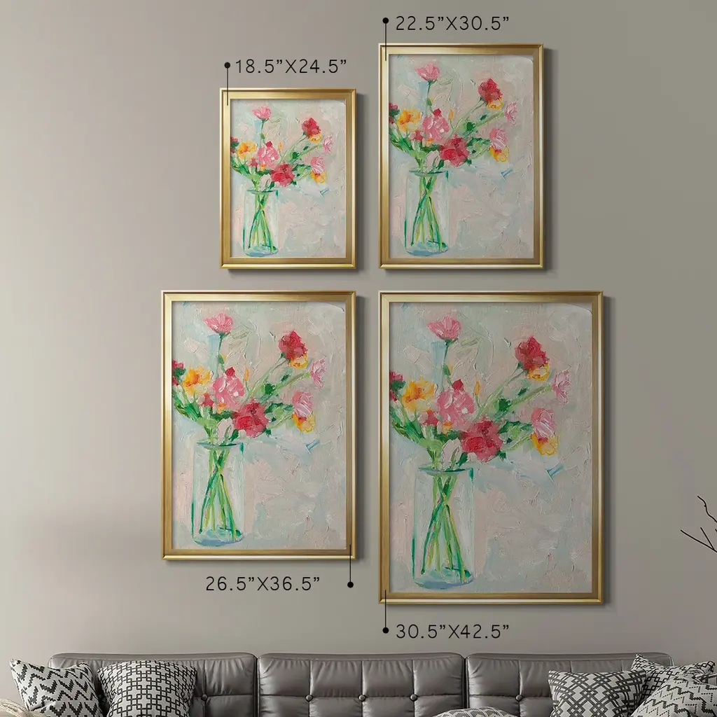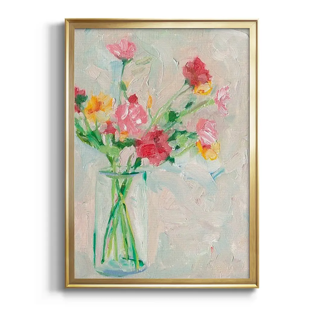Painterly Soft Bouquet I Premium Framed Print - Ready to Hang A Premium Framed Print created to last. Framed in distressed wood and available in an array of sizes and colors Featuring a beveled a solid wood stretcher bar, each piece comes ready to hand 4 SIZES AVAILABLE 30.5''X42.5'' - Overall Size 26.5'X36.5'' - Overall Size 22.5''x30.5'' - Overall Size 18.5''x24.5'' - Overall Size Each piece is made to order. Each piece comes with hanging hardware. Made in the USA Ready to Hang