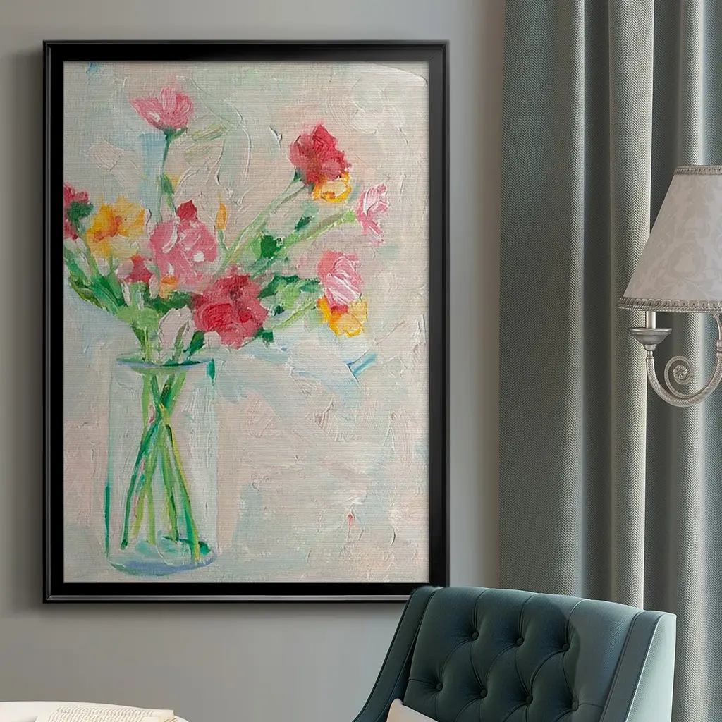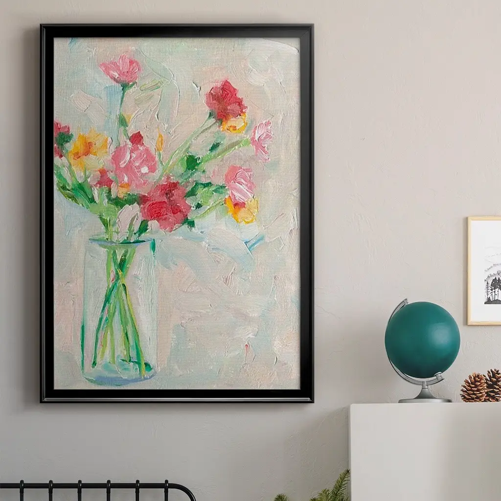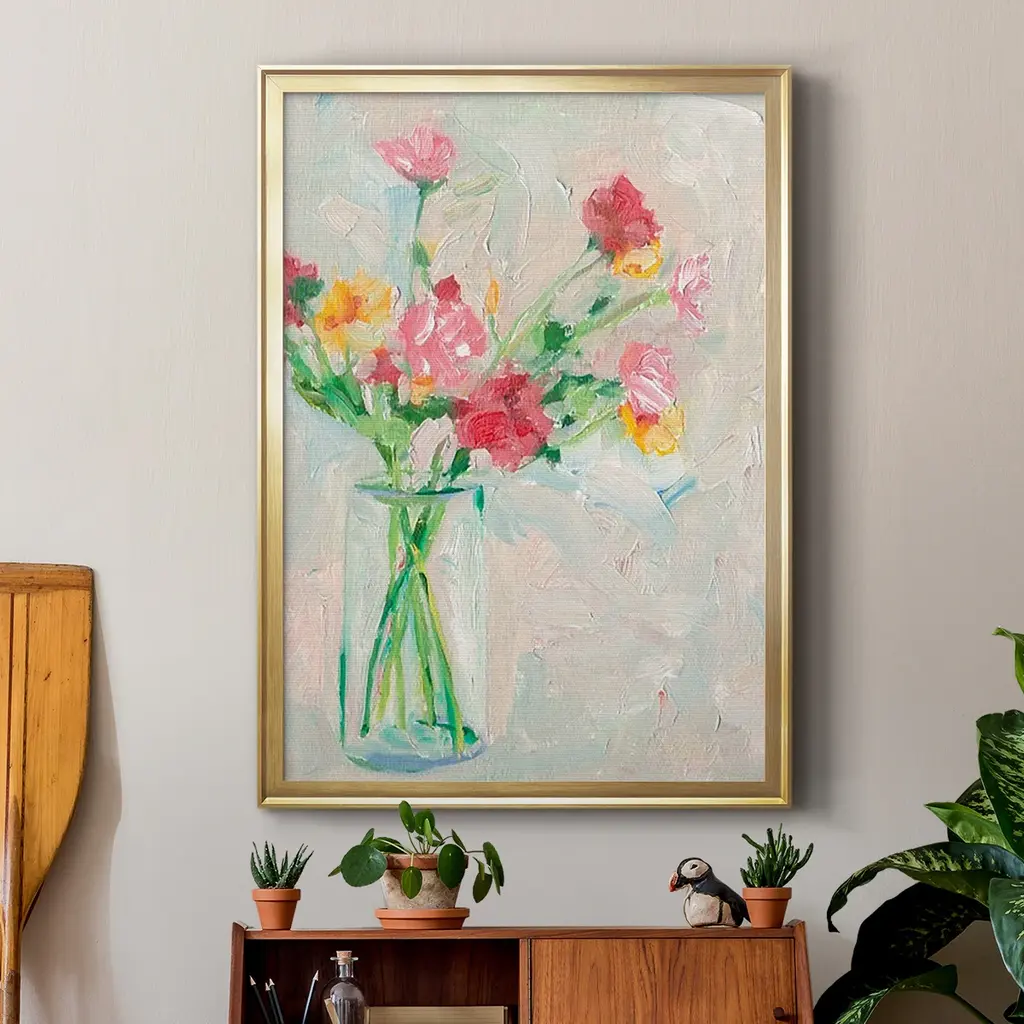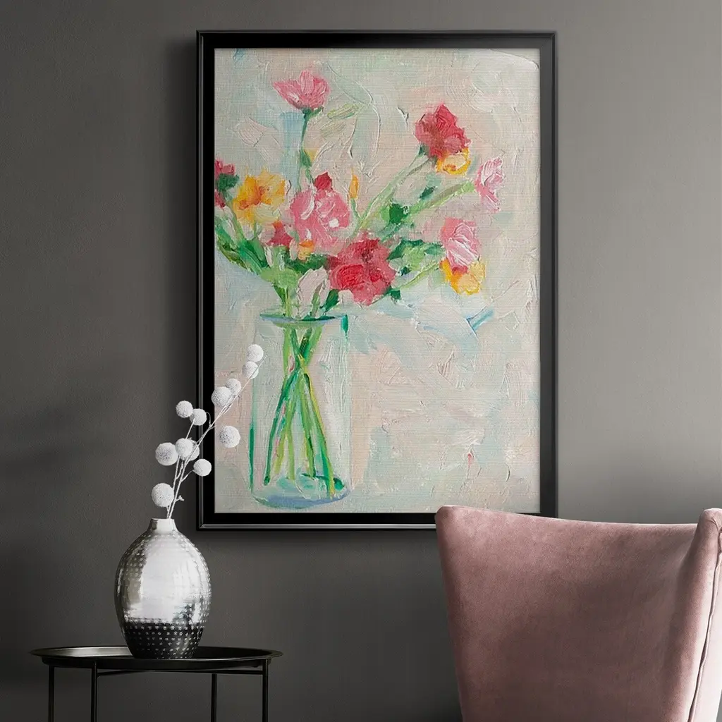 Painterly Soft Bouquet I Premium Framed Print - Ready to Hang A Premium Framed Print created to last. Framed in distressed wood and available in an array of sizes and colors Featuring a beveled a solid wood stretcher bar, each piece comes ready to hand 4 SIZES AVAILABLE 30.5''X42.5'' - Overall Size 26.5'X36.5'' - Overall Size 22.5''x30.5'' - Overall Size 18.5''x24.5'' - Overall Size Each piece is made to order. Each piece comes with hanging hardware. Made in the USA Ready to Hang