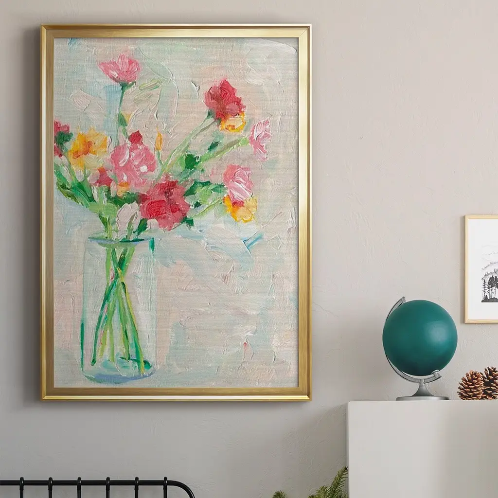 Painterly Soft Bouquet I Premium Framed Print - Ready to Hang A Premium Framed Print created to last. Framed in distressed wood and available in an array of sizes and colors Featuring a beveled a solid wood stretcher bar, each piece comes ready to hand 4 SIZES AVAILABLE 30.5''X42.5'' - Overall Size 26.5'X36.5'' - Overall Size 22.5''x30.5'' - Overall Size 18.5''x24.5'' - Overall Size Each piece is made to order. Each piece comes with hanging hardware. Made in the USA Ready to Hang