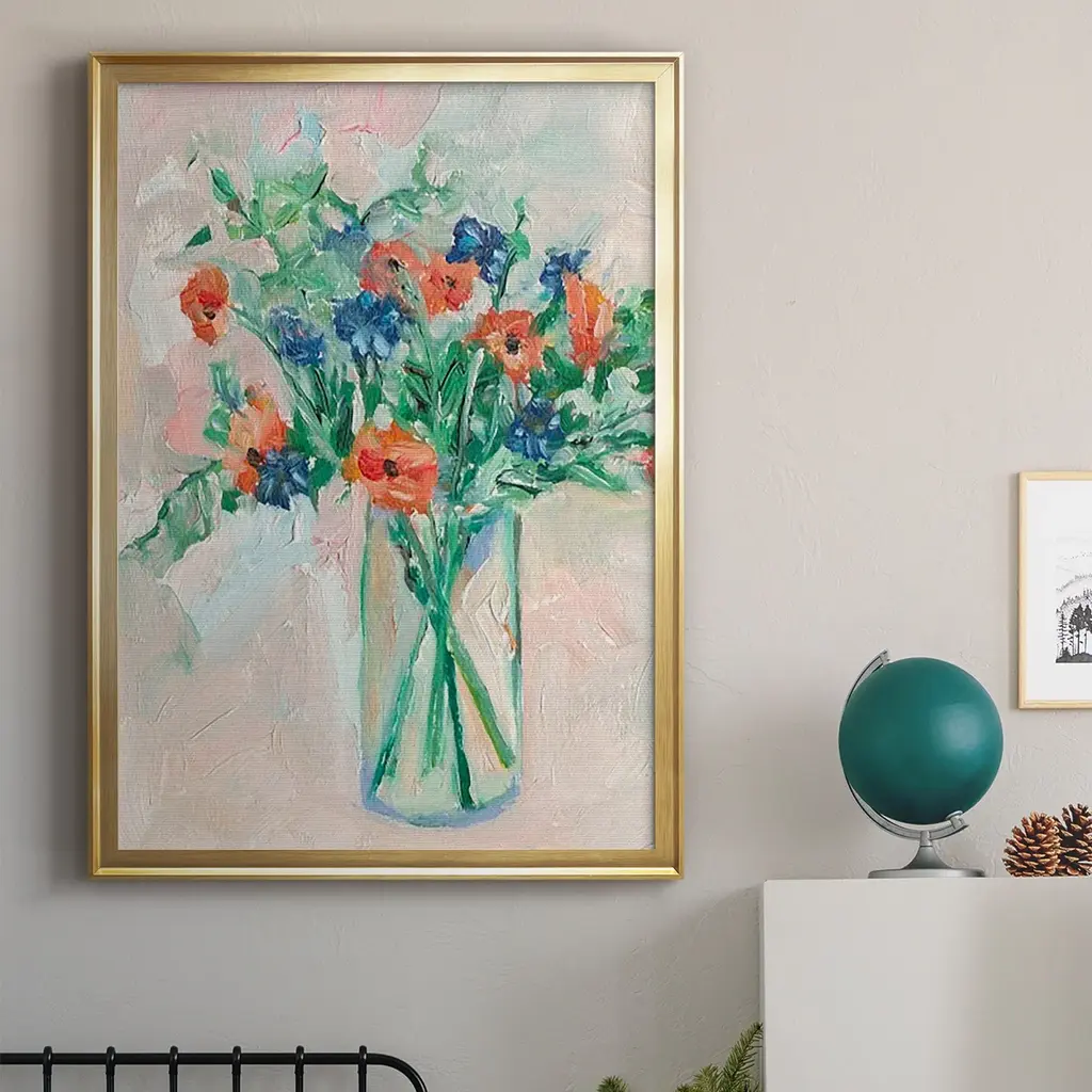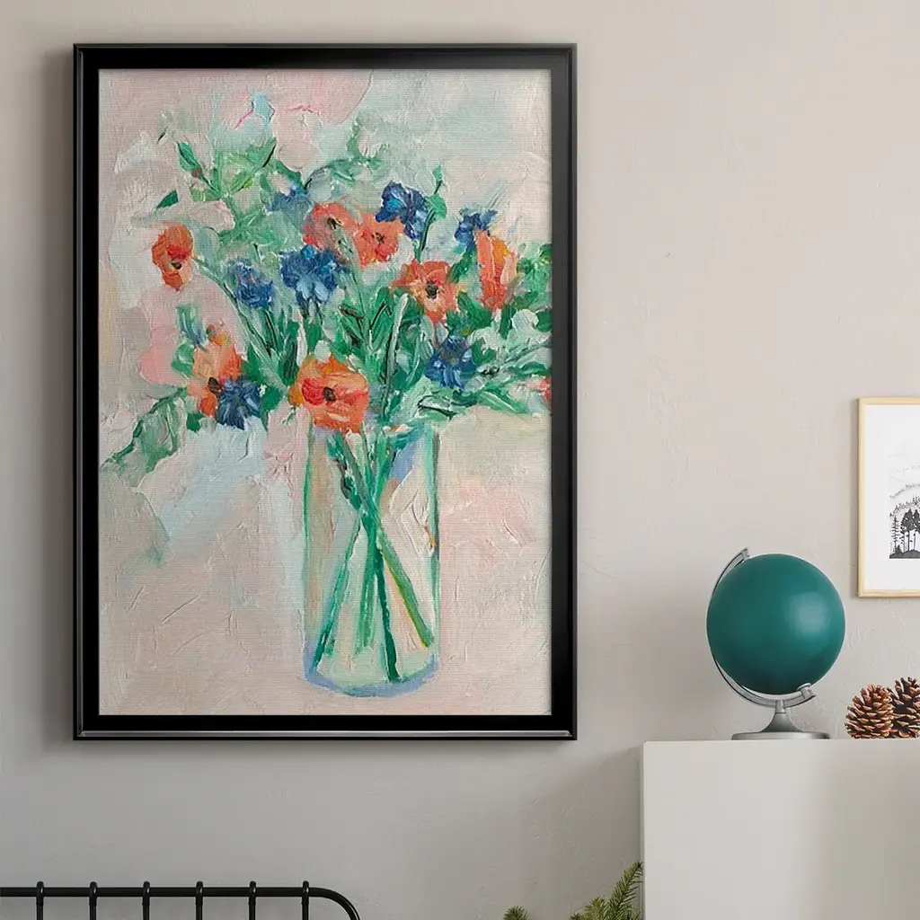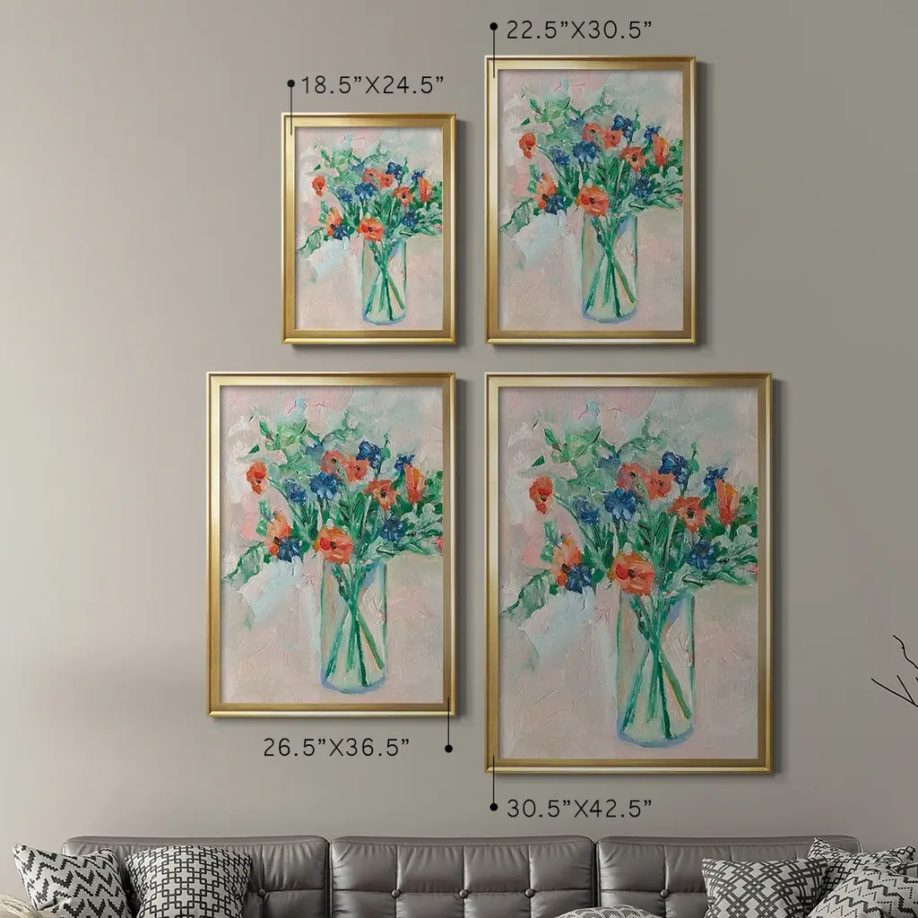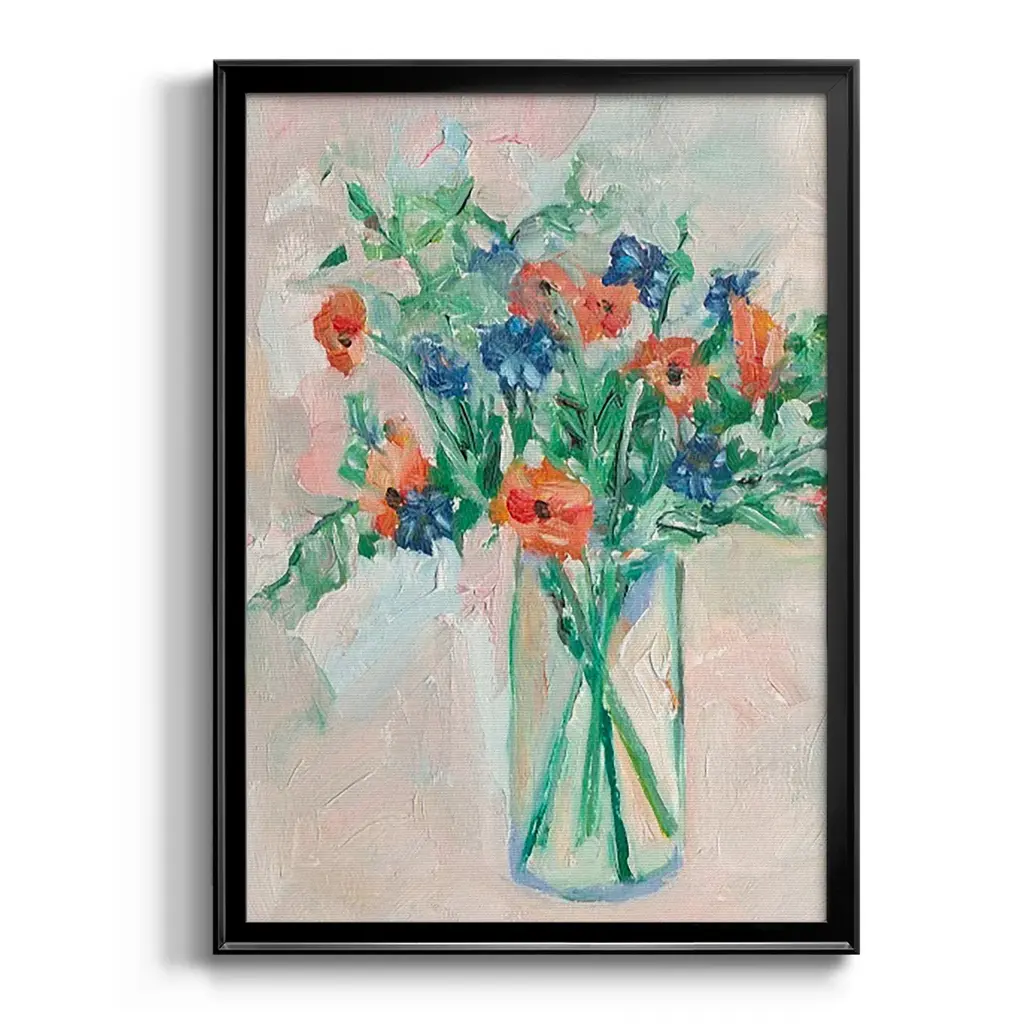 Painterly Soft Bouquet II Premium Framed Print - Ready to Hang A Premium Framed Print created to last. Framed in distressed wood and available in an array of sizes and colors Featuring a beveled a solid wood stretcher bar, each piece comes ready to hand 4 SIZES AVAILABLE 30.5''X42.5'' - Overall Size 26.5'X36.5'' - Overall Size 22.5''x30.5'' - Overall Size 18.5''x24.5'' - Overall Size Each piece is made to order. Each piece comes with hanging hardware. Made in the USA Ready to Hang