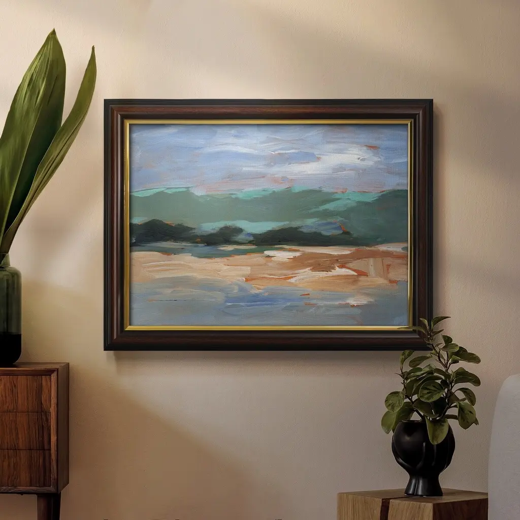 Painter's Composition Study V Premium Framed Canvas- Ready to Hang A Premium Framed Canvas created to last. Framed in distressed wood and available in an array of sizes and colors Featuring a beveled a solid wood stretcher bar, each piece comes ready to hand 3 SIZES AVAILABLE 16''X20'' - Overall Size 18'X27'' - Overall Size 24''x36'' - Overall Size Each piece is made to order. Each piece comes with hanging hardware. Made in the USA Ready to Hang Giclee Paper Print Acrylic Glass Beveled Matt Board