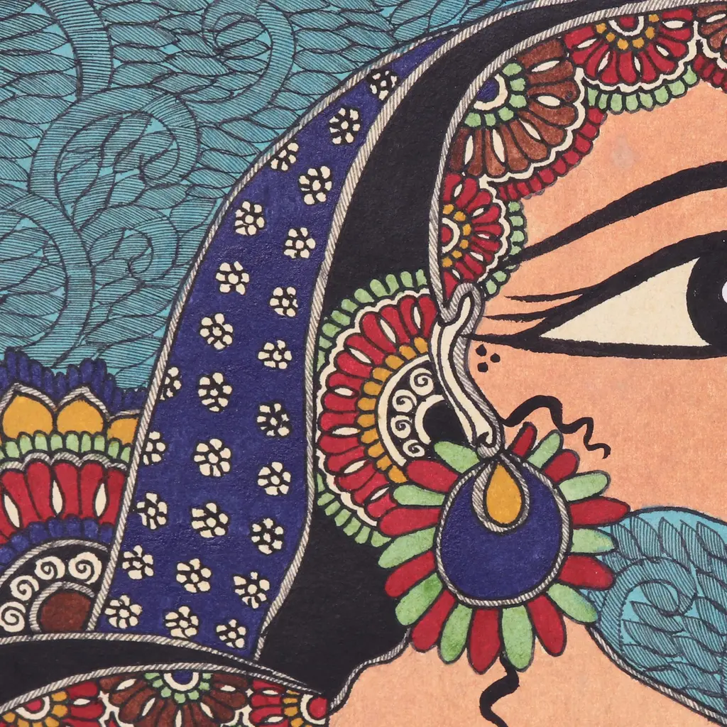 Painting Of Hindu Godess Radha In Madhubani Style From India- Radha With Gopies