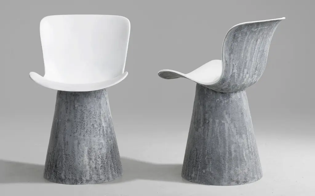 Pair of Equilibria chairs by ImperfettolabDimensions: 45 x 53 x H 76 cmMaterials: FibreglassImperfetto LabWho we are ? We are a family.Verter Turroni, Emanuela Ravelli and our children Elia, Margherita and Eusebio.All together, we are separate parts and their expansion.The laboratory is in the care of Verter.From the sketch on paper he mixes materials, shapes and colours to the definition of the object.His intuitive and visionary research is performed with the complicity, recognition and practical support of his brother Erich.Emanuela is the voice of a vivid and silent work.She connects Imperfettolab with the other and with the rest of the world, respecting its nature and identity.She watches over its wholeness and authenticity.The playful spirit is entrusted to our children.They are the ones who test our works, certify their durability, functionality and enjoyment.We believe it is their expression, after all, that validates and makes our work universal.Since 1992, our thoughts and actions have moved, grown and taken shape in the land of Romagna.Between hills of cherry and olive trees, cultivated plains and piles of recyclable steel and iron.In between, the ancient Roman road via Emilia.A contrasting and mutating landscape that reflects in our furnishing sculptures.Ours is an open space, the times of art and life seamlessly merge.